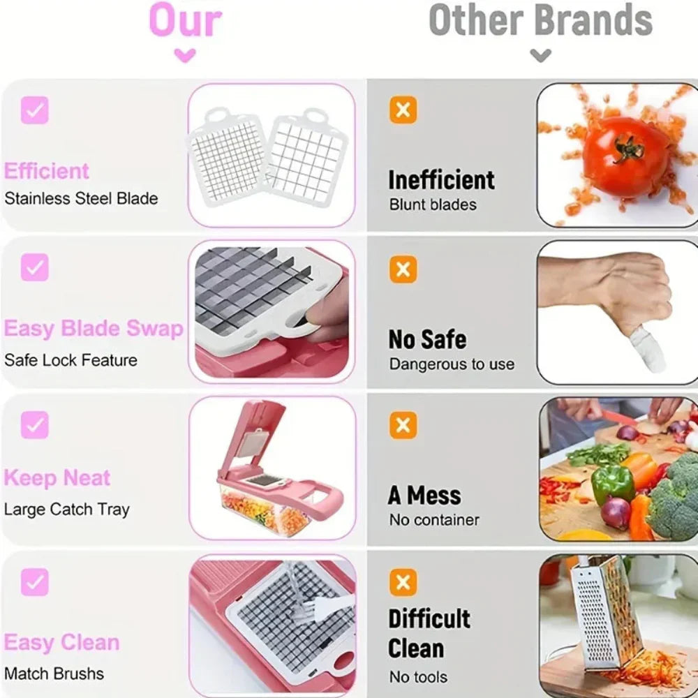 Make meal prep faster and more enjoyable than ever with our 14-Piece Multi-Functional Vegetable Prep Chopper. This all-in-one kitchen tool allows you to chop, dice, and slice vegetables with ease, unleashing your inner chef. Our chopper is crafted from high-quality materials and built to last, with an ergonomic design providing a comfortable grip. It's perfect for busy parents, college students, and anyone who loves to cook but is short on time. With its multifunctional capabilities, you can easily prepare healthy meals for yourself and your loved ones without the stress of excessive prep time. Order now and elevate your cooking game!