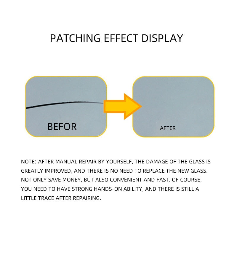 Premium Car Windshield Repair Resin Kit - 5 bottles included. Easily fix cracks and various windshield chips caused by scratches, road debris, and more. This high-quality repair resin is transparent, ensuring no yellowing over time. Save on the cost and time of replacing your entire windshield for minor damage. For larger damage, this kit offers temporary repair until you can visit a body shop. Achieve optimal results by using a curing light (not included). Convenient to use, transport, and store. Each set contains 5 reusable 3ml repair liquid bottles. Specifications: Material - Resin glue. Caution: Park your car indoors to prevent sunlight damage to the repair liquid. Clean the cracked area thoroughly to avoid repair failure. Package includes: 5 Repair Liquid bottles, 25 Cure Strips, and 5 Sleeve Razors. Use at your own risk. Final sale. Refund or exchange only for damaged items upon delivery, with notification within 3 hours.