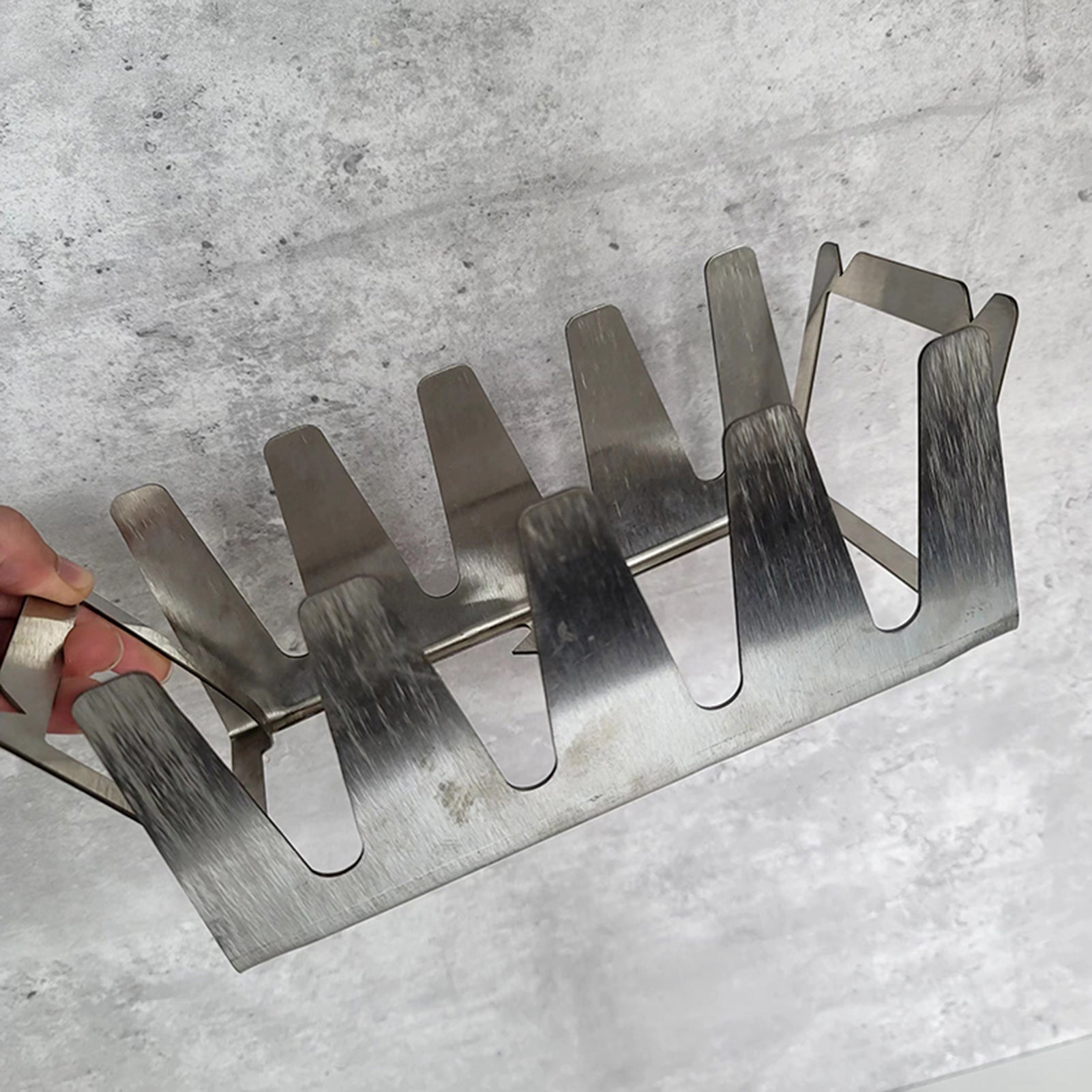 Convenient versatile grilling rack, ideal for various types of meat and vegetables, functioning as a roasting stand that promotes the removal of excess fat. Achieve perfectly grilled meats without the risk of charring. Crafted from durable stainless steel, ensuring repeated use.