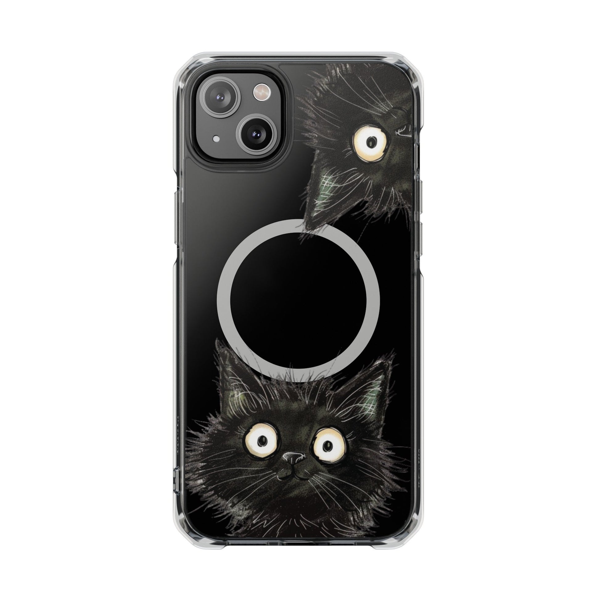 Experience top-of-the-line device protection and style with the Black Cat Magnetic Case. Its sleek design, featuring an elegant black cat pattern, adds a touch of feline charm to your phone. The case is constructed with high-quality polycarbonate and TPU materials, providing maximum durability. The embedded magnet module is compatible with MagSafe® technology, ensuring a secure hold. Plus, the air-cushioned bumper corners help to protect your device from any accidental drops. The case also comes with strategically placed holes, making it easy to attach straps and accessories. For cat lovers who crave both style and functionality, this clear case is the perfect choice.