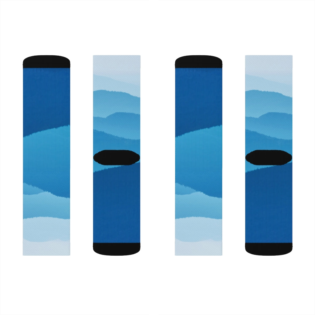 Experience both comfort and style with these premium Mountain print socks, perfect for any occasion. Add some sophistication to your office outfit or make a bold statement with your extravagant look. The socks are made with a blend of Polyester, Acrylic, Nylon, and Spandex materials, ensuring a comfortable fit. They come in three different sizes, with a ribbed tube and cushioned bottoms, providing you with maximum comfort throughout the day. Check the size guide to find your perfect fit. Don't settle for ordinary socks, try out these Mountain print socks for a unique look and unbeatable comfort.