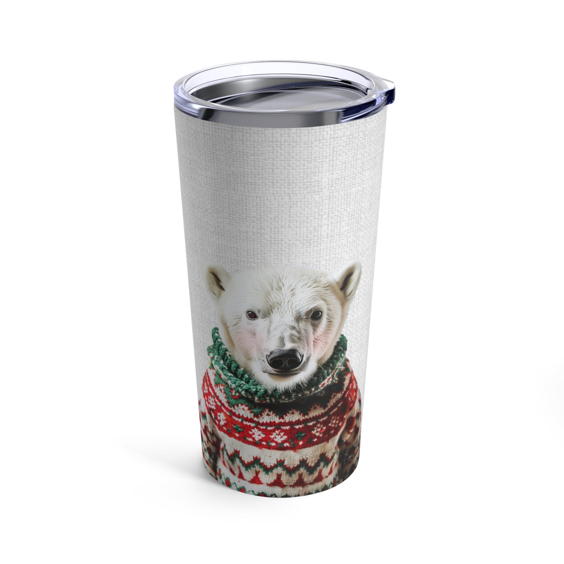 20oz Tumbler with a Christmas Sweater-Clad Polar Bear in Rosy Hue