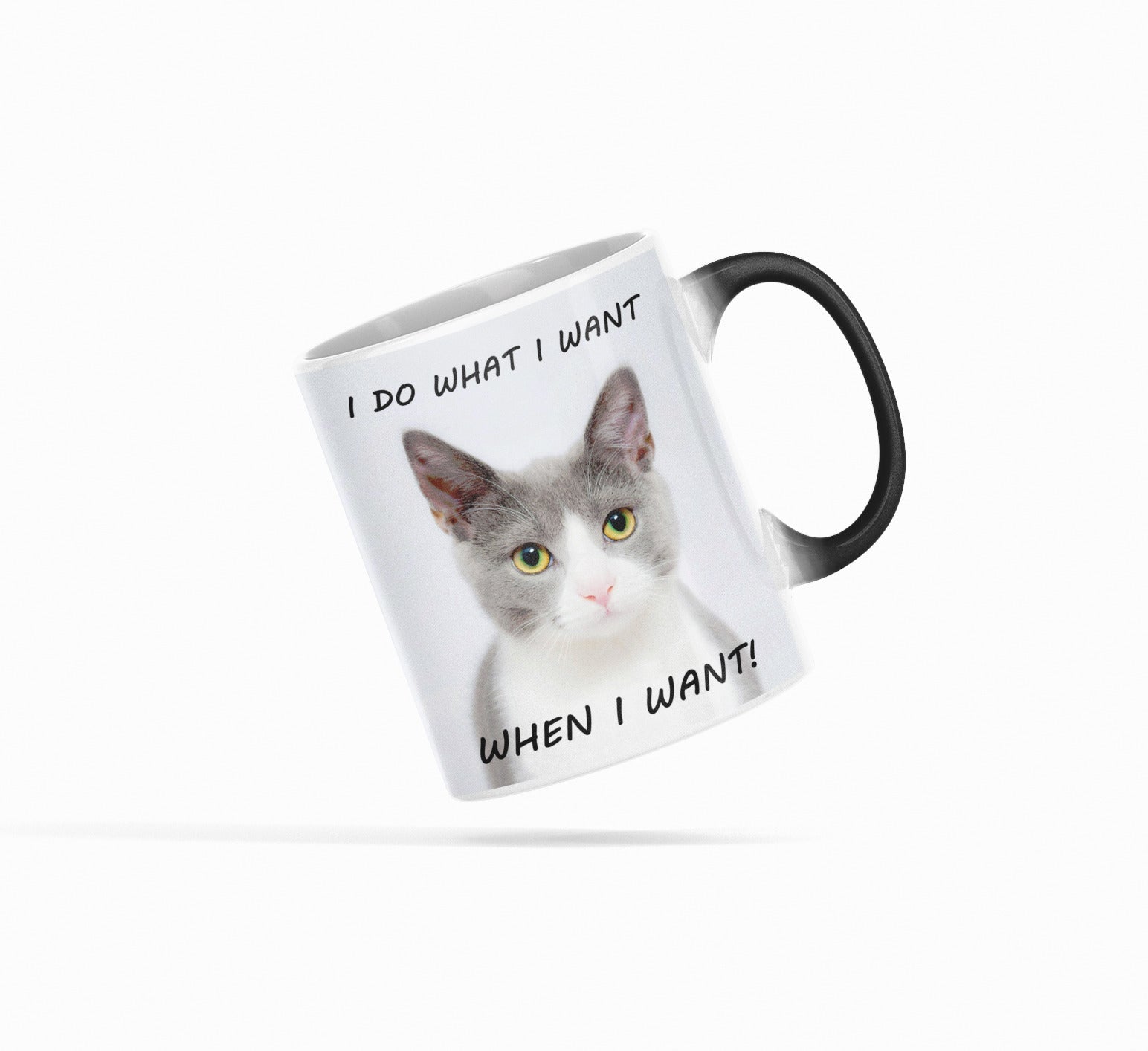 Heat Sensitive Color Changing Coffee Mug with a Bossy Kitten Vibe