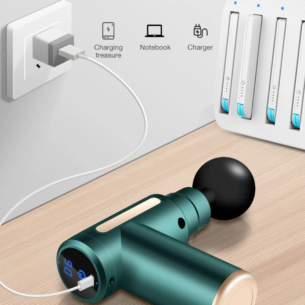 This portable massager is the perfect device to help alleviate muscle soreness, improve flexibility, and enhance your range of motion. Its small size allows you to target specific muscle groups that require the most attention. Lightweight and easy to carry, this massager is highly convenient for use at home or on the go. Its 10 gear speeds and 4 advanced settings deliver up to 3200 rpm and 6mm amplitude, while producing less than 45 dB of noise. Additionally, its rechargeable battery lasts for up to 6 hours, and it only takes 3 hours to charge. The package includes 4 massage heads, 1 USB cable, and a massager.