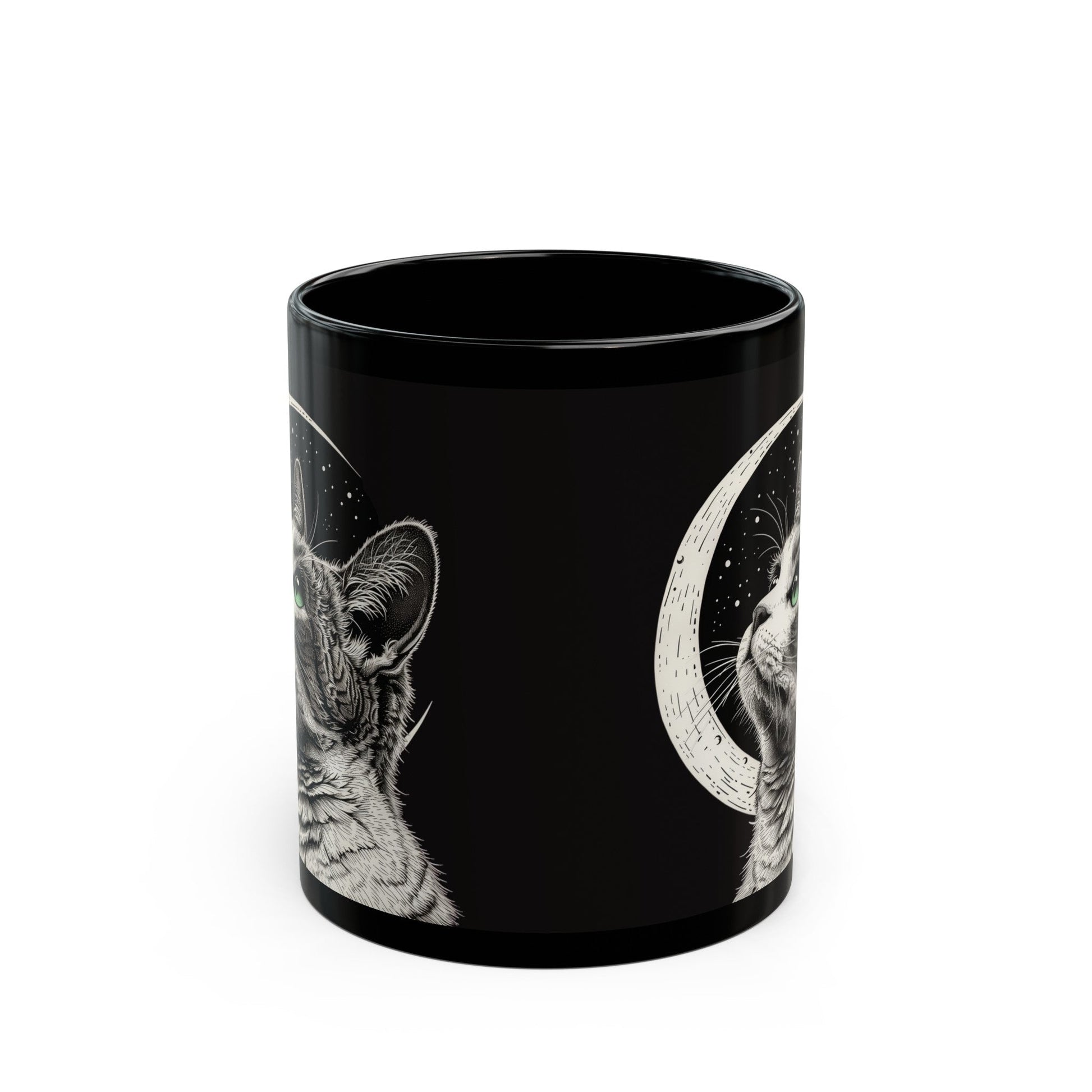 Black Ceramic Mug with Crescent Moon and Cat Design for Coffee and Tea