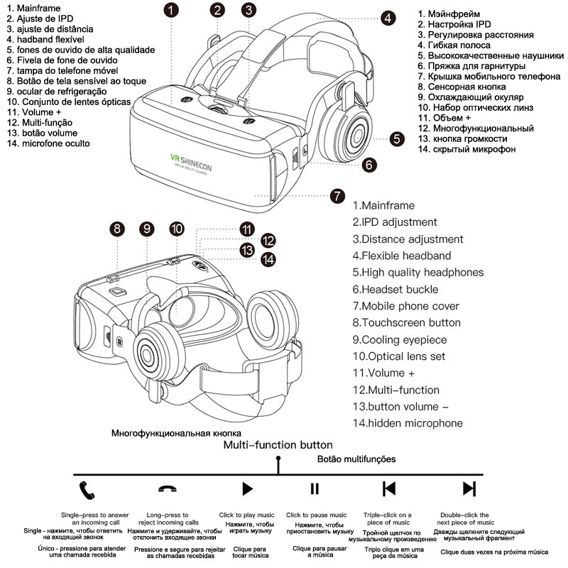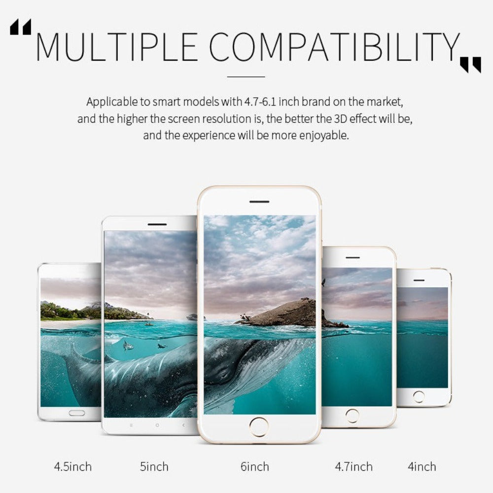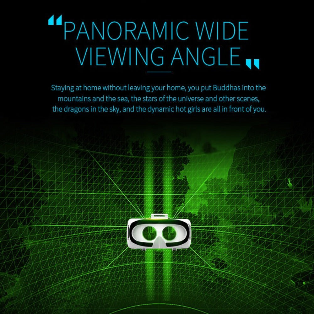 The Magic G6 VR headset is an updated version that comes with a controller and is compatible with smartphones ranging from 4.7 to 6 inches. Its panoramic view can create an immersive experience for watching movies, playing games, and more. The device's audiovisual play provides a comfortable, 360° surround vision. The 3D phase sound technology offers an audiovisual experience in 3D space with great dubbing effects, and strong bass. The VR headset has a size of 8.3"x 5.5" x 4.3", an FOV of 90 - 100°, and is compatible with phones having a 3.5mm headphone jack. The package includes one 3D VR virtual reality glasses, one controller, one headphone adaptor for iPhone, and a user manual.