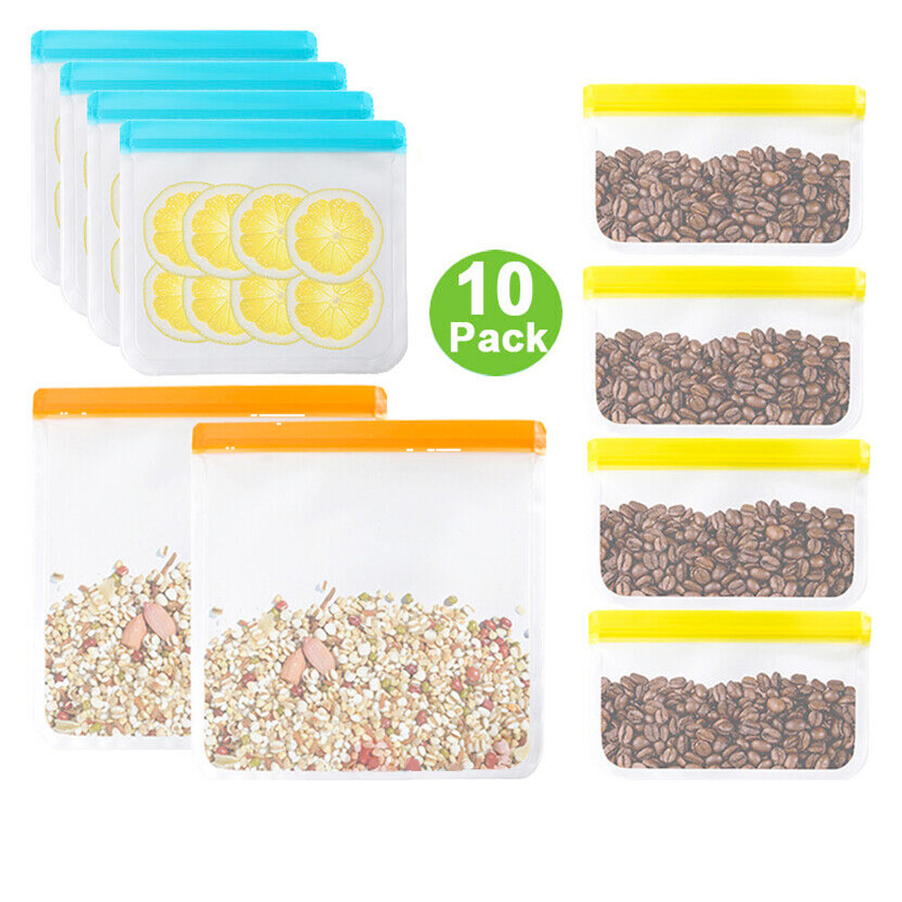 Reusable Leak Proof Food Storage Zip Bags - 10 Piece Pack: Environmentally Conscious and Sustainable Choice for Storing Your Food