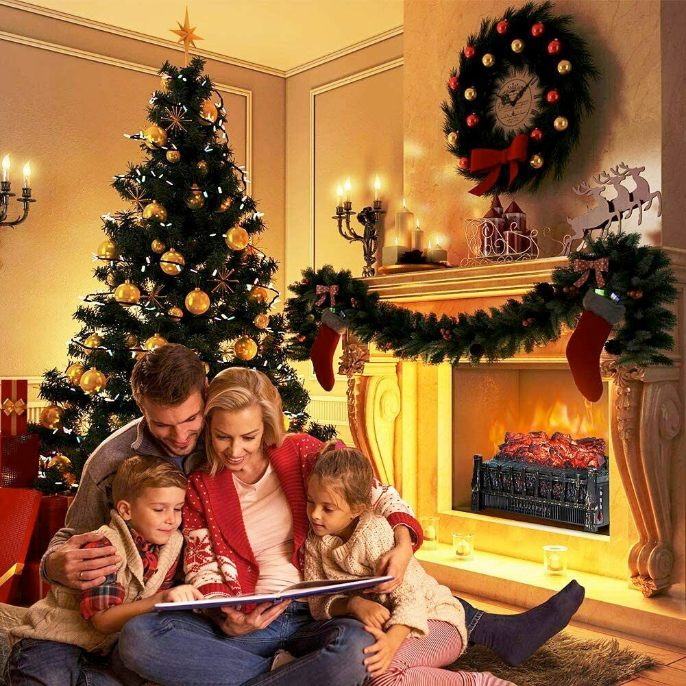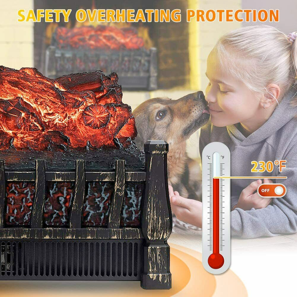 Experience a cozy and inviting ambience in your room this winter with this elegant electric log fireplace. Say goodbye to smoke concerns and enjoy the beauty of realistic moving flames in four different modes. Customize your comfort with adjustable temperature, timer, and convenient auto shut off feature. With fast heating capabilities and no assembly required, this fireplace is perfect for both homes and offices. The included remote control adds convenience to your experience. Crafted with high-quality brass material, it measures 20.5" in width, 12.2" in height, and 8.7" in depth. The powerful 1500W infrared heating technology covers an area of 400 ft² (37.1 m²). With a weight of 12.23lb, it comes with a 90-day warranty. Elevate your space with this stylish fireplace.