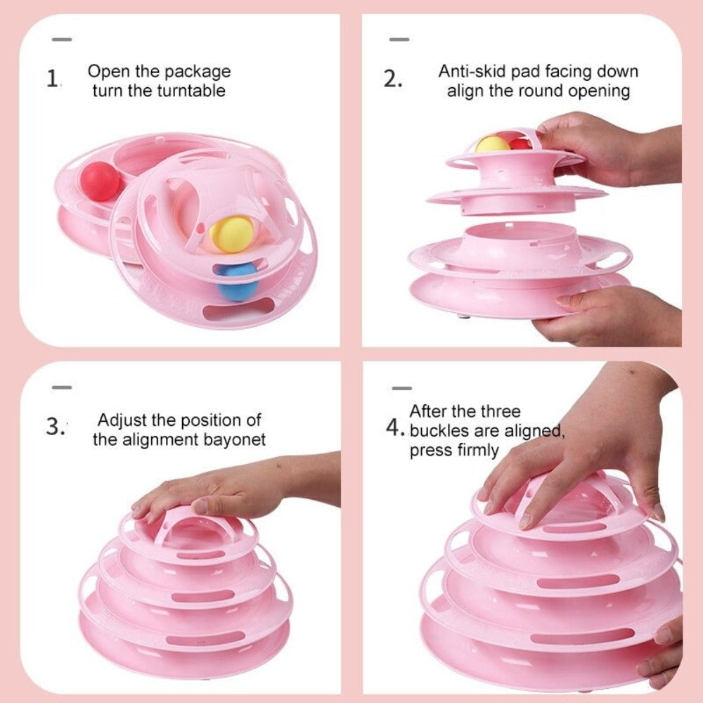 Discounted Interactive Feline Toy. Multi-tiered Rotating Platform. Made of Plastic. Available in Pink, Blue, and Orange. Features: 1. Captivating: The feline turntable consists of 4 layers, each with a ball that rolls and makes sound, piquing the curiosity of cats and enticing them to play. 2. Furniture Saver: Keeps cats occupied, diverting their attention from scratching furniture. 3. Promotes Exercise: Encourages cats to engage in physical activity, ensuring a healthy body. 4. Boredom Buster: Provides companionship and relieves mental stress, promoting feline well-being. 5. Variety: Choose from 3 appealing colors based on personal preferences. Package Includes: 1 x feline turntable. *Balls NOT included. Notes: 1. Manual measurements may result in a 1-3 cm difference. Different colors may vary by 3-5 g. 2. Due to screen variations, color may differ slightly.