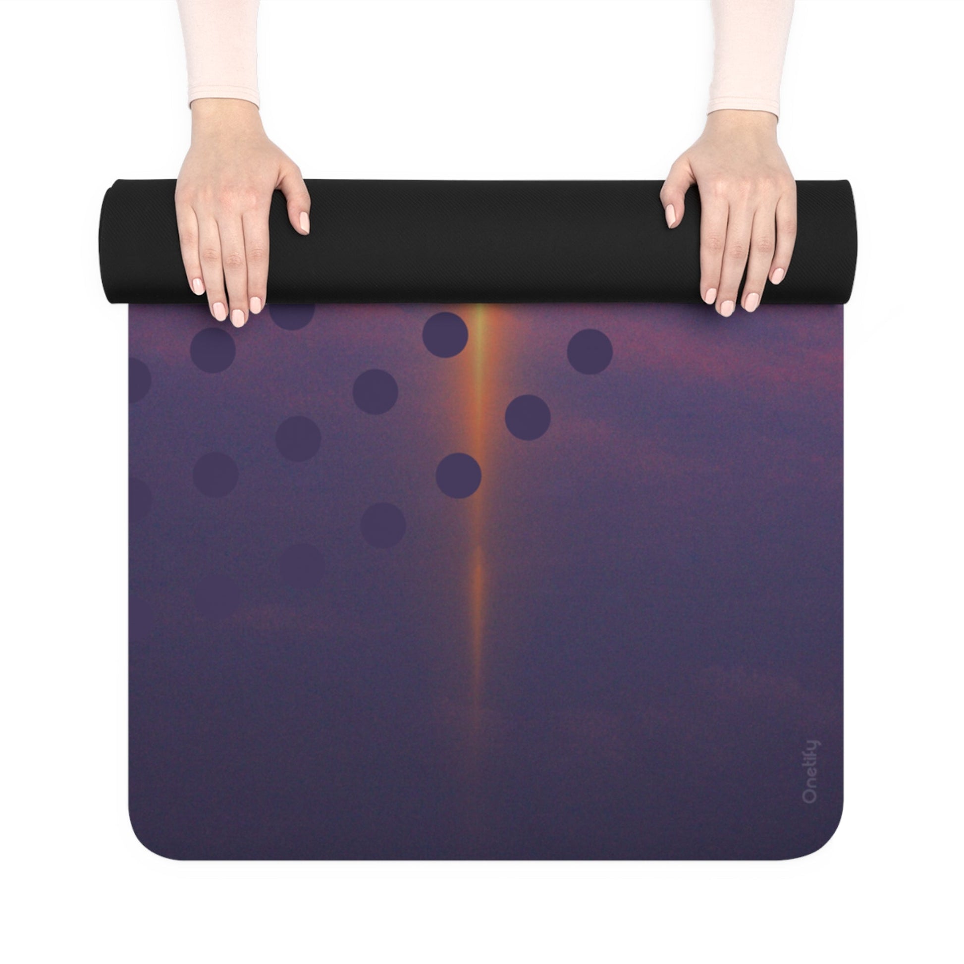 Experience a blissful yoga practice with the Galactic Flare Yoga Mat - your ultimate companion. This premium mat boasts an anti-slip rubber bottom, providing unrivaled stability and perfect balance in any pose. The impact-absorbing design ensures maximum comfort during your entire exercise routine. Embrace the harmony of stability, comfort, and grace with every movement on this mat, and elevate your practice to new heights. Measuring 24" x 68" (61cm x 173cm), this lightweight mat features a microfiber suede top and rubber bottom for durability. Trust the "" brand to take you on a journey of centered tranquility.