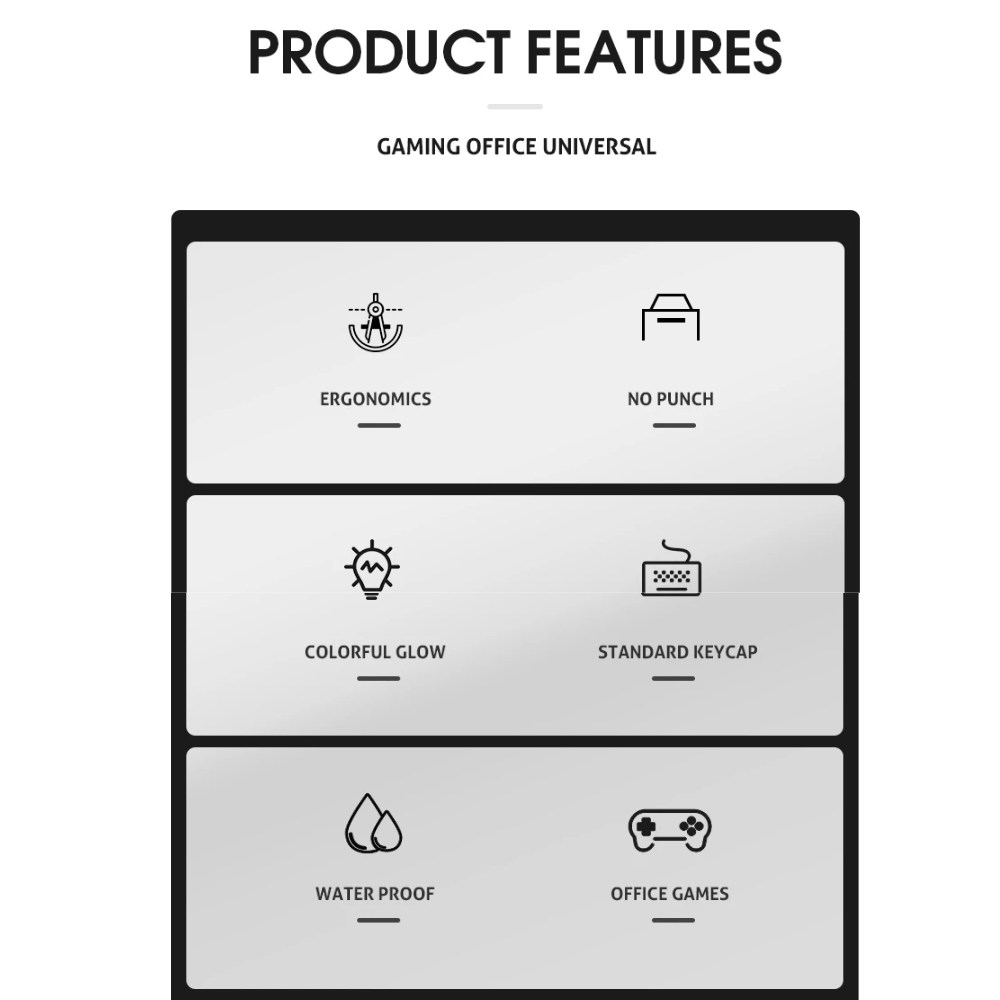 Experience the Glow USB Backlit Gaming Keyboard, a wired masterpiece crafted to enhance your immersive gaming sessions with its mechanical-like touch. Elevate your gaming setup with the vibrant MULTICOLOR backlighting, infusing every keystroke with style. The sleek and slim design not only adds to the keyboard's aesthetics but also ensures a comfortable gaming experience. Discover the perfect combination of functionality and visually stunning design with this USB Color Backlit Gaming Keyboard. Specifications: Operation Style: Capacitive, Type: WIRED, Application: Desktop, Laptop, Keyboard Standard: 104 Keys, Keycap material: ABS plastic, Backlight Type: MULTICOLOR, Interface Type: USB, Operating Platform: Windows 98/2000/XP Vista Win7/8/10, Rated Voltage/Current: DC 5V/100mA, Keyboard cable length: approx. 1.5 meters, Keyboard size: Approx. 442mm x 133mm x 20mm.