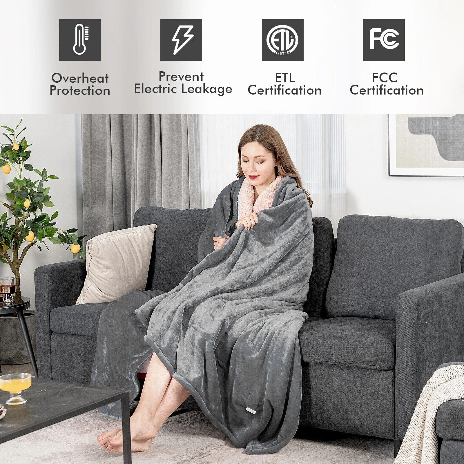 Introducing the cozy and luxurious twin-size heated blanket! Snuggle up in warmth and comfort with this soft flannel and skin-friendly Sherpa fabric blanket. With 10 hours auto shut-off and 5 adjustable temperature levels, you can customize your perfect level of coziness. Measuring 84" x 62" (L x W), this blanket provides ample coverage. Rest assured with safety features like overheat protection and electrocution prevention. When it's time for a refresh, simply disconnect the 14.5ft power cord and toss it in the washing machine. Get ready to experience the ultimate warmth and comfort with this heated blanket today!