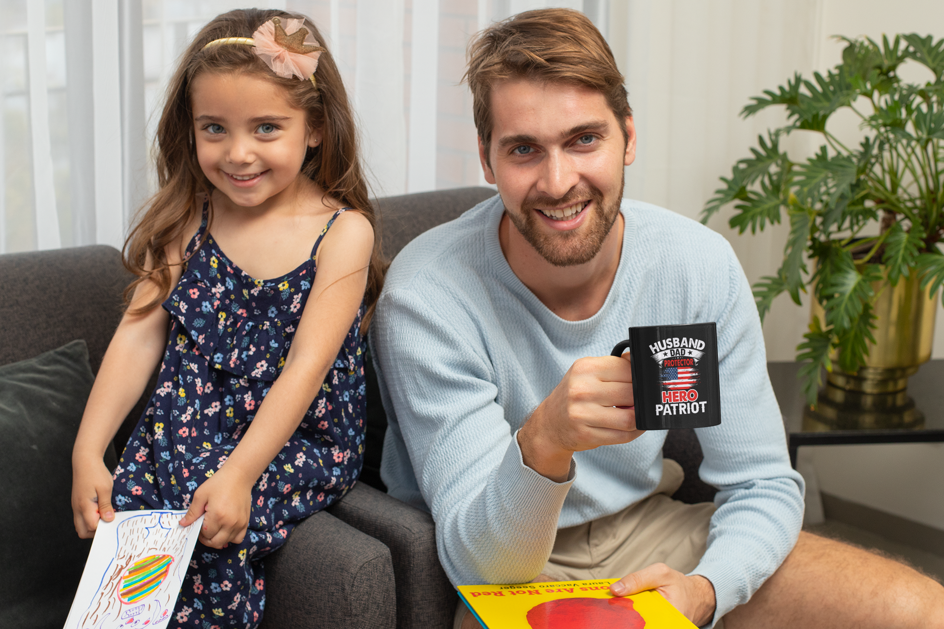Presenting the Husband, Dad, Protector, Hero, Patriot Mug, an ideal choice for savoring hot beverages like coffee, tea, or hot chocolate. Crafted with sturdy ceramic material, this white mug features rounded corners and a C-handle to provide you with a comfortable grip. With an 11 oz capacity, it is perfect for serving your favorite drink and complements your kitchen or workplace decor. Safe to use in microwaves for heating food or liquid and suitable for dishwasher use, cleaning this mug is hassle-free. Sip your beverage of choice in style with this classic mug.