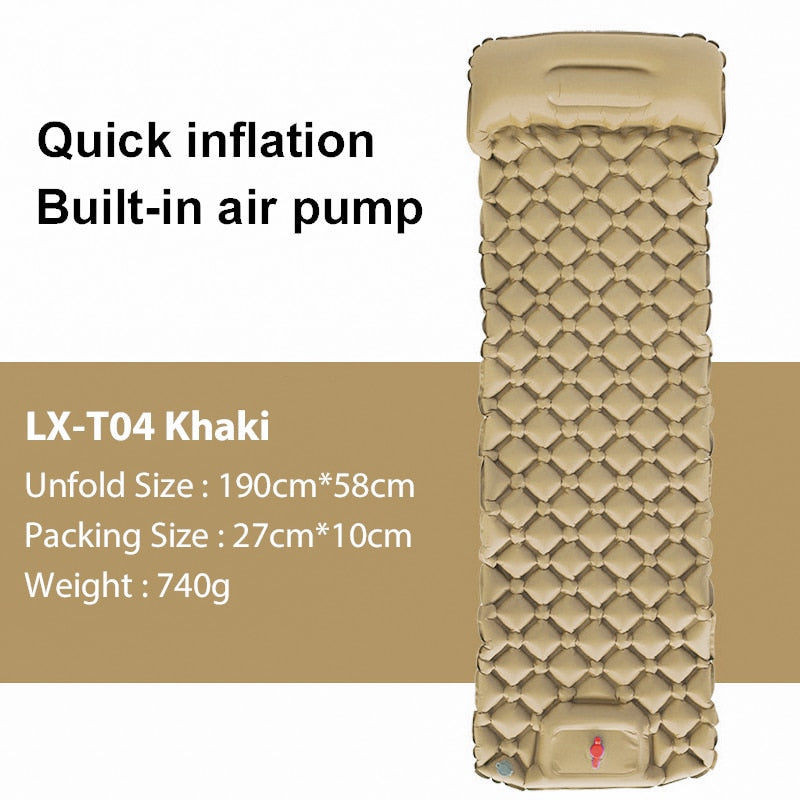 Sleep soundly during your next outdoor excursion with our Inflatable Camping Mat with Pump and Headrest. Built to be ultralight, moisture-resistant, and tear-resistant, it's the perfect sleeping surface for adventurers. The mat comes with a built-in pump that makes inflating and deflating a breeze, and the double-layer valves prevent air from escaping. Made of 40D nylon and TPU coated material, it's not only durable but also easy to clean. When not in use, the mat folds down to just 27*10*10cm and weighs only about 600g, making it easy to pack and carry. The mat includes an air pump and pillow, and the package includes an air mattress and storage bag.