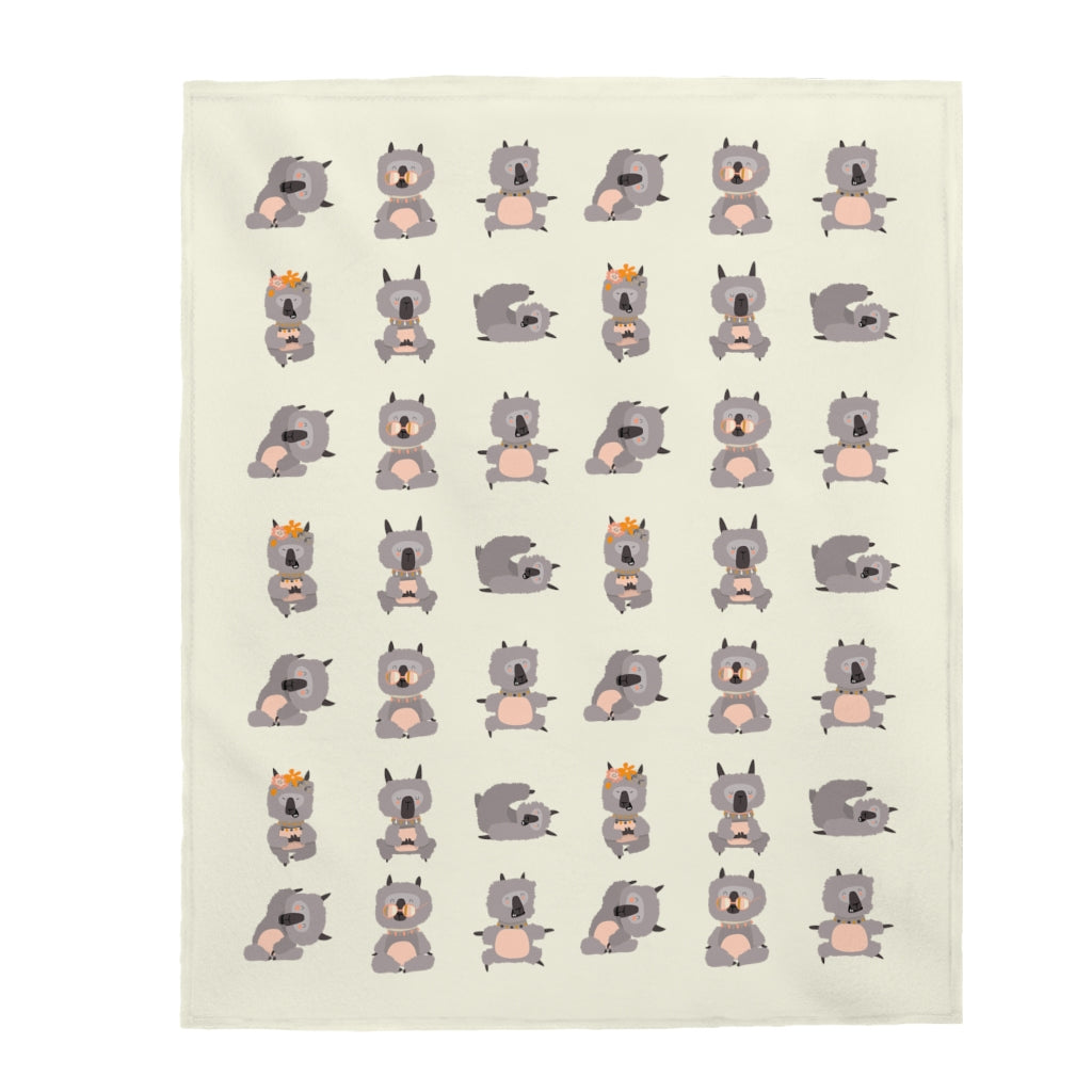 Create a warm and cozy ambiance in your home with this luxurious Lama Yoga Poses Velveteen Plush throw. Experience its irresistibly soft texture and transform your living space. An ideal gift for your loved ones. Crafted from 100% Polyester fabric, this throw features a beautiful design on one side. Available in three sizes - S (30" x 40"), M (50" x 60"), and L (60" x 80"). Check the size guide below for precise measurements.