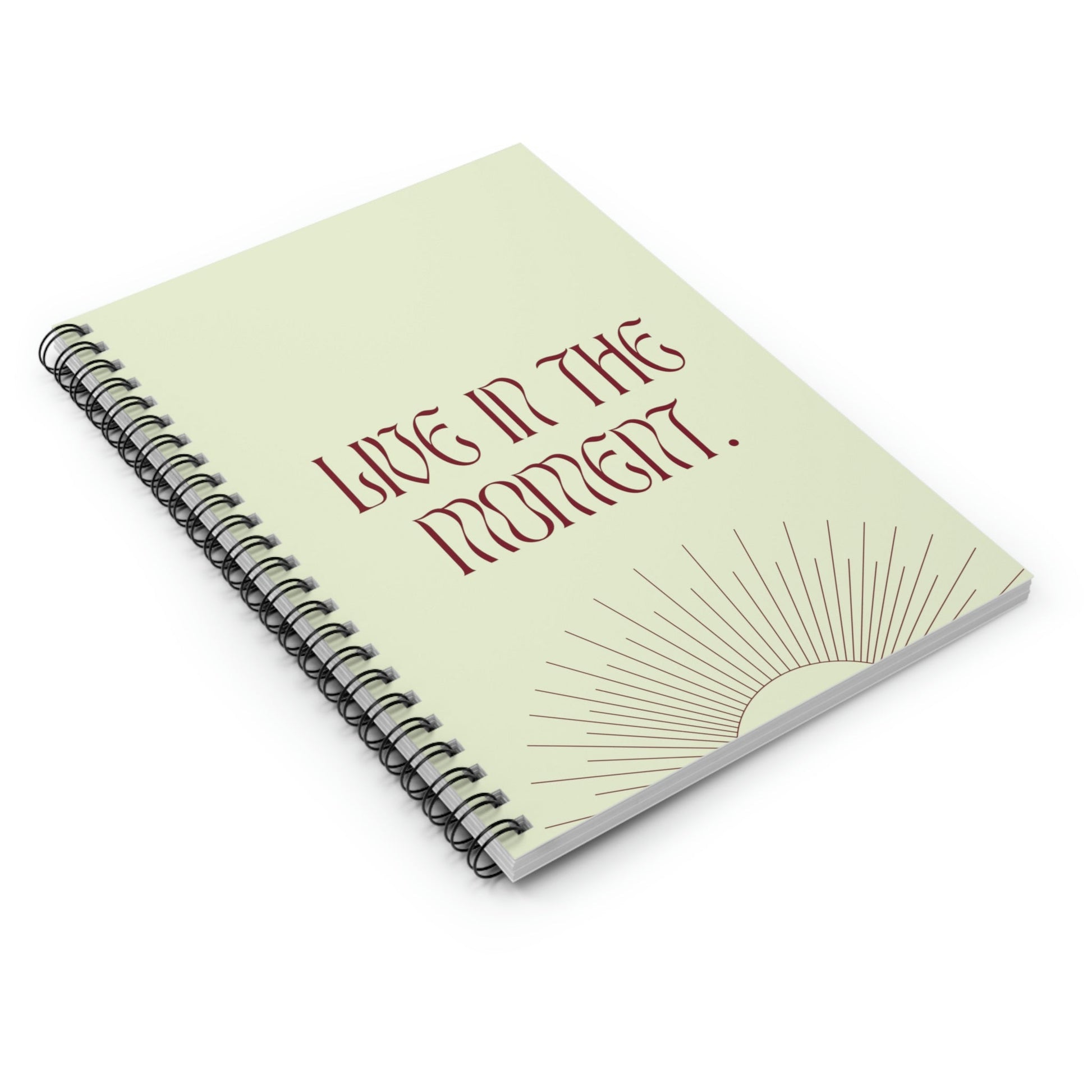 Experience the Present Spiral Notebook showcases a trendy and sleek design. This notebook lies flat, making it ideal for jotting down notes, capturing everyday thoughts, or penning your positive affirmations. Boasting 118 pages of ruled line paper, this spiral notebook is the ultimate companion for your daily adventures. With its front cover print and dark grey back cover, it exudes a stylish charm.