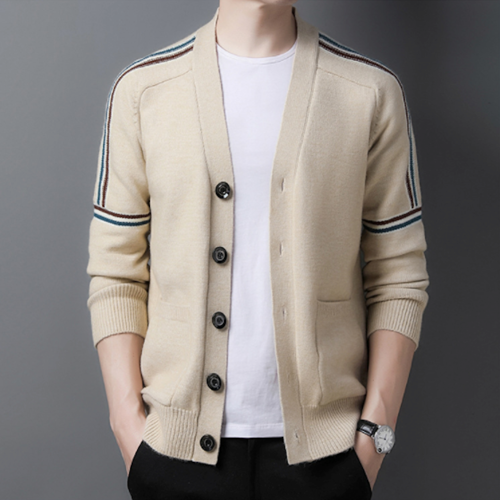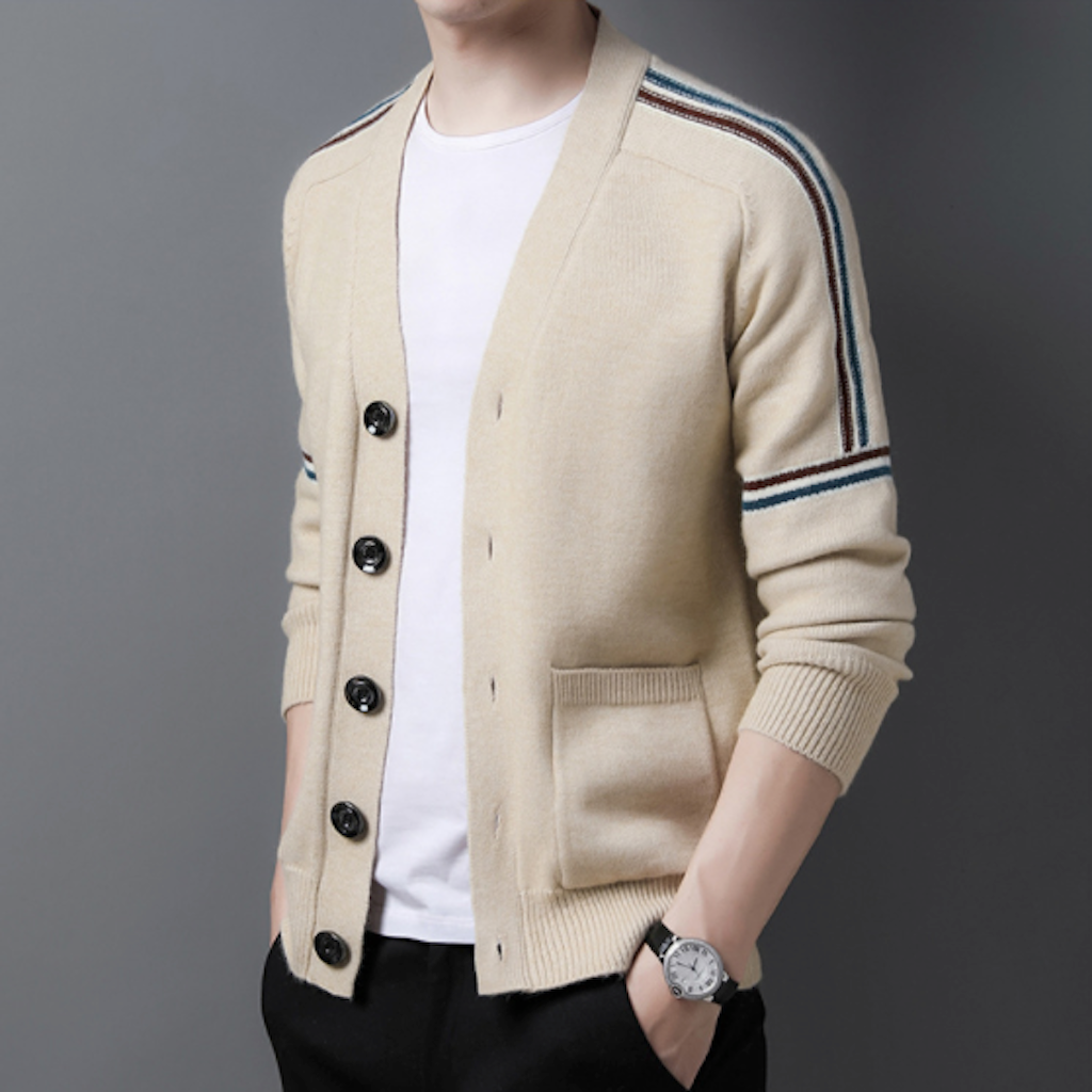 Stylish Men's Cardigan Featuring Colorful Stripes