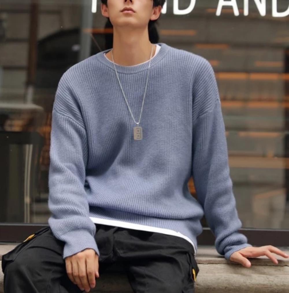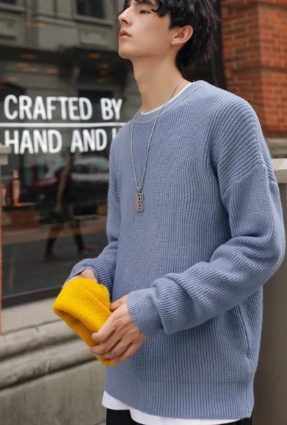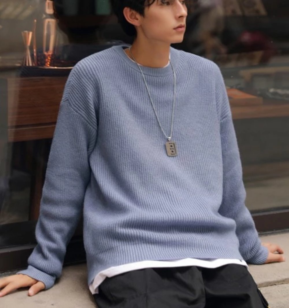 Loose-Fitting Crew Neck Sweater with a KPOP Vibe for Men