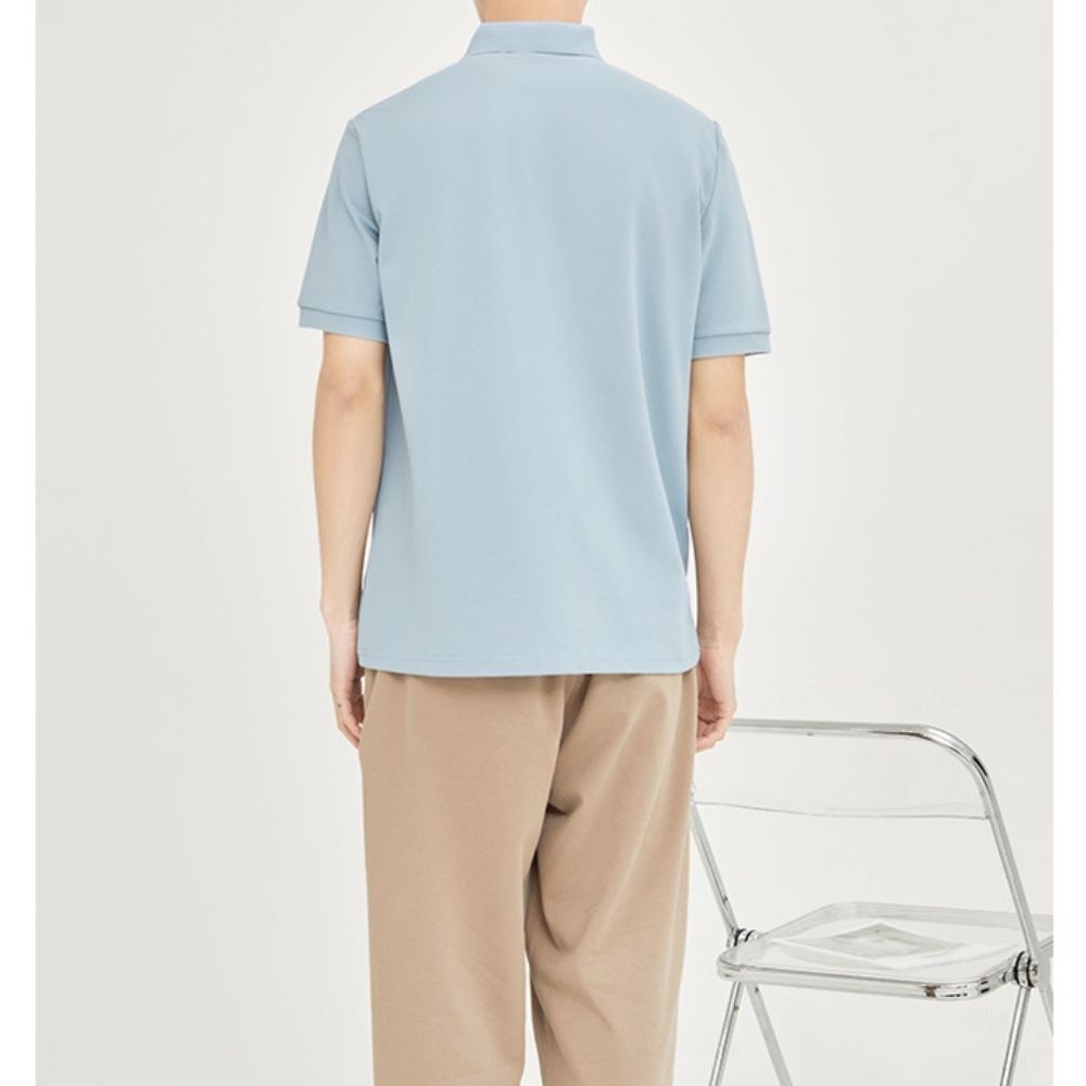 Introducing our men's lightweight, minimalist polo shirt featuring understated logo designs on the front. The collar boasts a stylish three-button design. Made from a blend of cotton and polyester, it offers a slim fit. Choose from three stylish colors: khaki, blue, and black. Available in sizes XS, S, M, and M+. For the perfect fit, refer to the measurements below. Please note that measurements may vary slightly. Length: XS - 25.98", S - 29.52", M - 30.31", M+ - 30.71". Chest: XS - 37.79", S - 41.74", M - 44.88", M+ - 46.45". Shoulder: XS - 16.77", S - 17.71", M - 18.66", M+ - 19.13". Sleeve: XS - 24.12", S - 24.60", M - 25.19", M+ - 25.50".