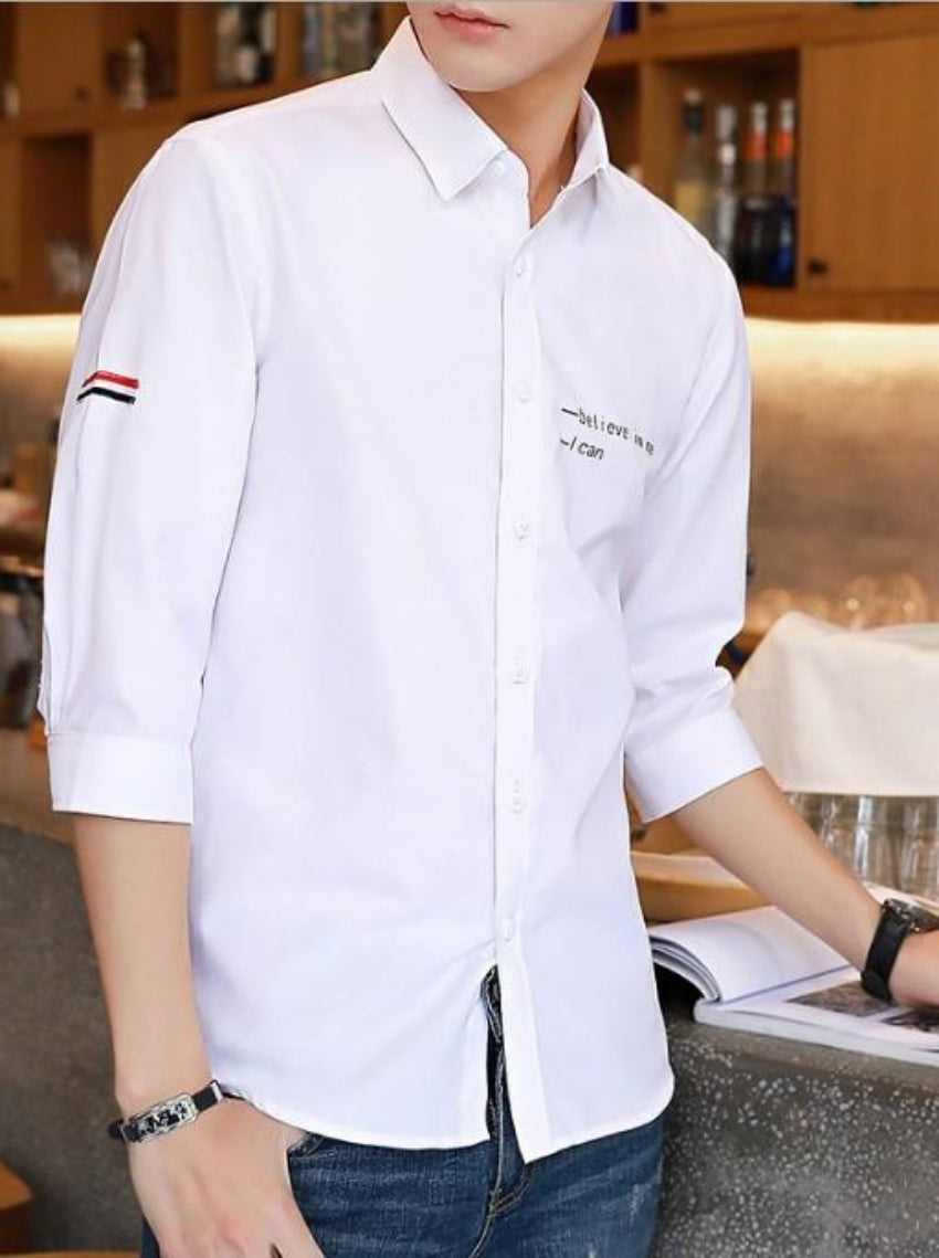 Discover the Men's Urban Fashion Half Sleeve Button Up Slim-Fit Shirt. Crafted from a high-quality Cotton Blend fabric, this shirt is available in White, Blue, Navy, and Gray. Designed with a slim fit, it offers a modern and stylish look. Choose from XS, S, M, or L sizes. For precise sizing, refer to the following measurements: