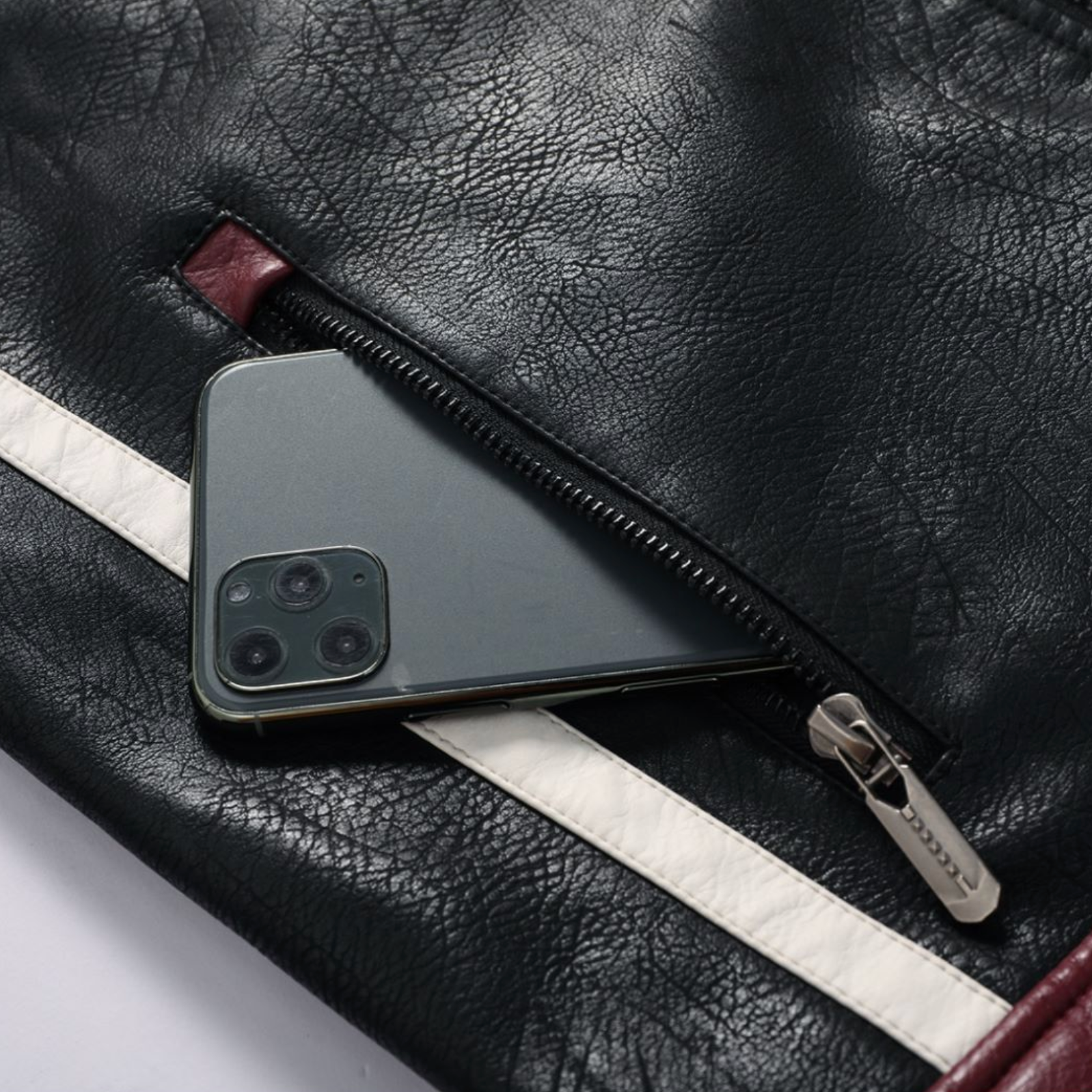 Experience the ultimate combination of style and sustainability with our sleek faux leather biker jacket. Crafted from high-quality vegan leather, this jacket is designed to keep you warm with its cozy inner faux fur lining. Available in Navy and Red, in sizes ranging from XS to L. Embrace a cruelty-free fashion statement with this must-have piece. The regular fitting ensures a comfortable and flattering silhouette. Made from durable vegan leather, it's a timeless addition to your wardrobe. Embrace the future of fashion with our vegan leather biker jacket.