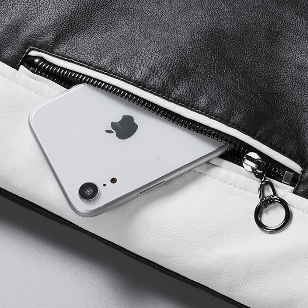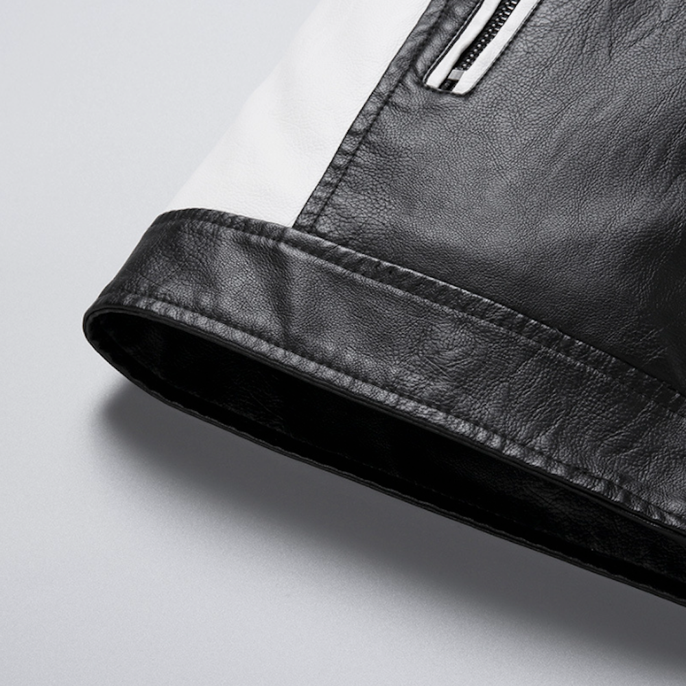 Two-Toned Faux Leather Motorcycle Jacket for Men