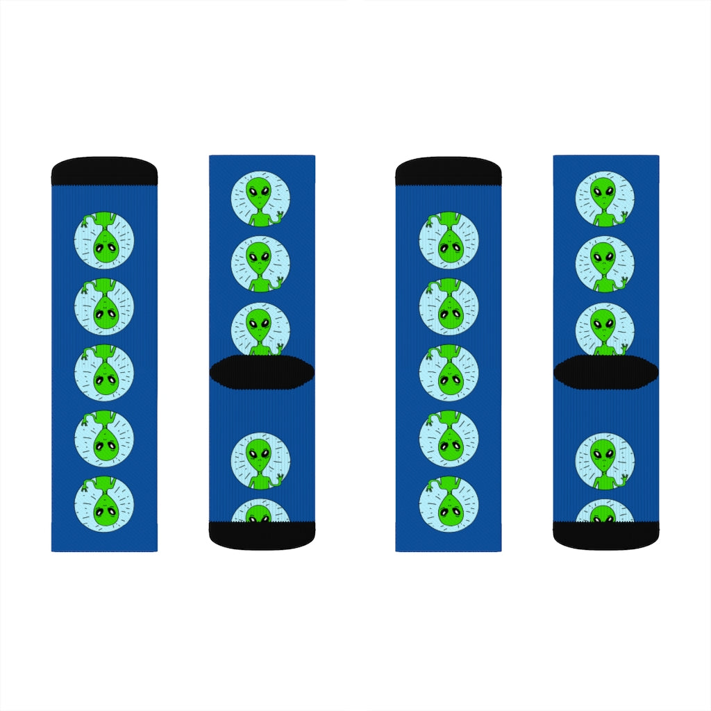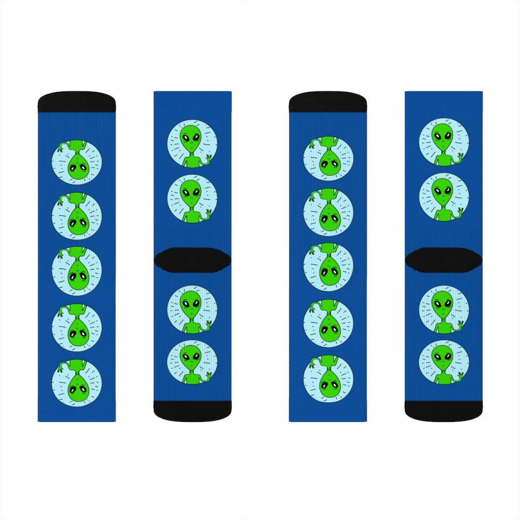 These top-notch socks feature a captivating Alien design, delivering unrivaled comfort and style. Whether you're looking to enhance your office attire or make a bold fashion statement, these socks are the perfect choice. Made with a blend of 60% Polyester, 10% Acrylic, 25% Nylon, and 5% Spandex, they offer a comfortable and snug fit. With three different sizes available, a ribbed tube design, and cushioned bottoms, these socks are a must-have. Refer to the size guide below for perfect fitting: