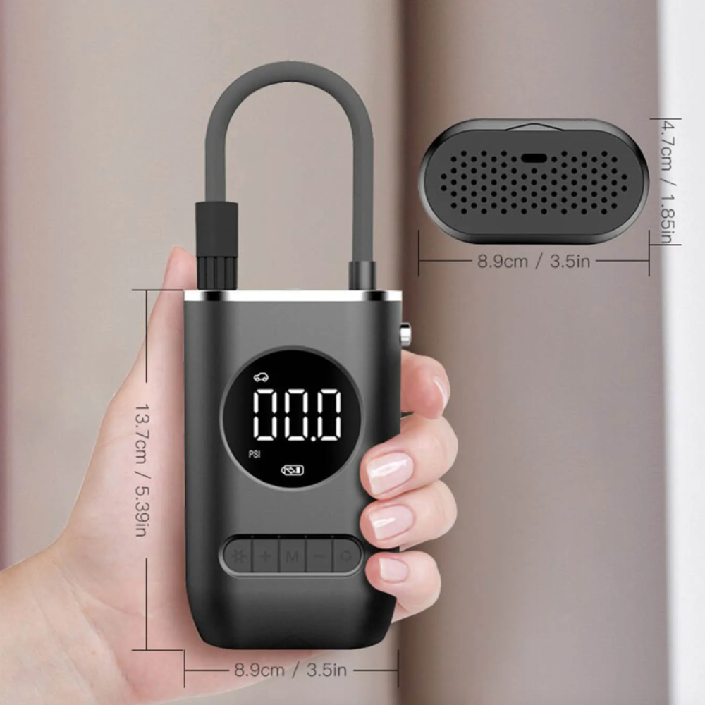 Elevate your on-the-go experience with our Palm Size Portable Digital Wireless Air Compressor, the perfect solution for all your inflation needs! Its compact design allows it to fit effortlessly in your glove compartment or backpack, ensuring you’re always prepared for any situation. With a digital display, preset pressure settings, and an automatic shut-off function, you can easily monitor and adjust your inflation needs with peace of mind. Made with durable metal materials and equipped with acoustic noise reduction technology, this mini air compressor is built to last. Plus, with an emergency lighting feature, you’ll always be prepared for any emergency. Don't wait for the unexpected to happen, order yours now and experience worry-free travels!