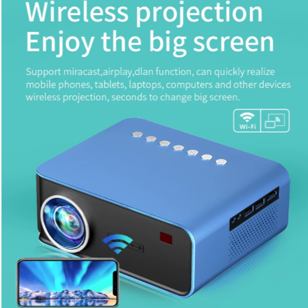 The Mini Portable Home Theater Projector 1080p is a compact and versatile entertainment device that lets you enjoy your favorite movies, TV shows, sports events, and video games on a large and immersive display. With advanced 1080p resolution, this projector delivers stunningly clear and vibrant visuals, ensuring every detail is crisp and lifelike. Its compact size and lightweight construction make it easy to carry and set up anywhere you desire, and it comes with multiple connectivity options including HDMI, USB, and AV inputs, making it compatible with a wide range of devices. This projector also features built-in speakers, eliminating the need for external audio equipment. Overall, it's a perfect choice for an immersive and enjoyable viewing experience.