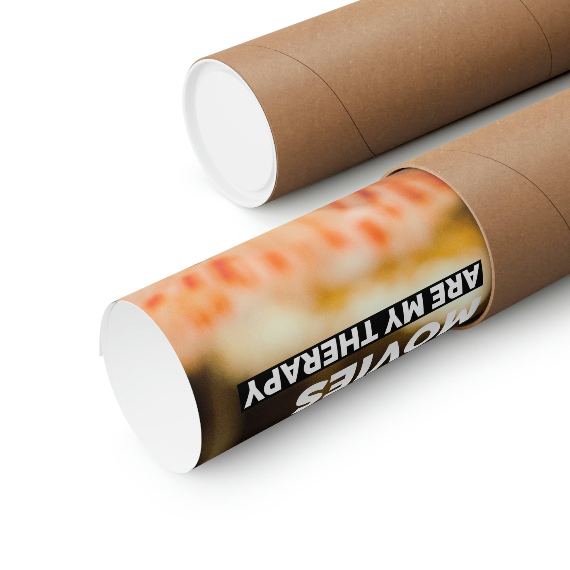 Get a mental boost with the Movies Are My Therapy poster. Showcasing a vertical design, this premium matte poster is made with 175 gsm fine art paper that assures quality. Whether for your home, office, or lounge, let this poster create a statement and add a personal touch to your space. It comes in multiple sizes, including 12" x 18", 20" x 30", and 24" x 36", to fit your preferred wall space. All prints are shipped unframed and securely packed in a poster tube or stiffened envelope, ready for your framing style. With its matte finish, this poster is perfect for indoor use only.