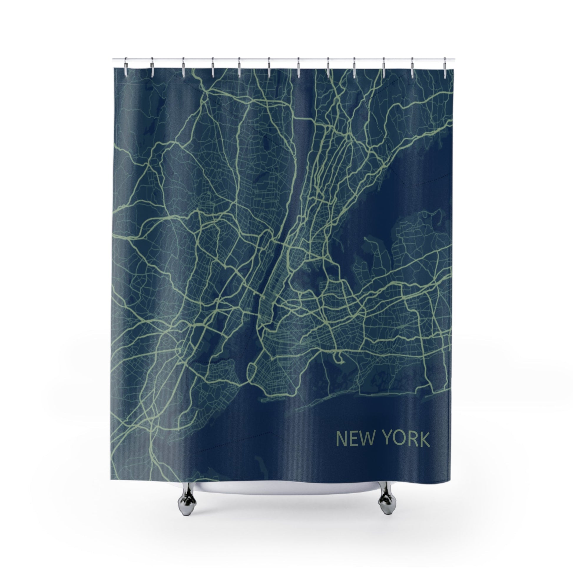 Introduce a distinctive shower curtain for your bathroom with the New York City Shower Curtain. This shower curtain is crafted with utmost care, providing a unique touch to your personal space. Constructed from top-quality polyester fabric, it ensures durability and longevity. Featuring a reinforced buttonhole top, installation is quick and hassle-free. The machine washable design offers easy maintenance. This shower curtain is made of 100% polyester and showcases a one-sided print. Please note that hooks are not included. The size of this curtain measures 71" x 74".