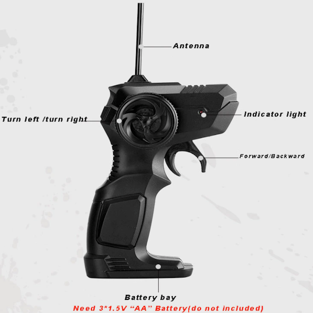Introducing the Mighty Dragon 1:16 Remote Control 4WD Monster Truck! Dominate any terrain with its powerful performance and impressive features. With a 45° slope climb capability, it fearlessly takes on any challenge. The front crash protection design minimizes impact on its internal parts. The left and right fine-tuning device ensures accurate straight-line driving. Crafted with high-quality paint for a safe and eco-friendly experience. Equipped with a suspension shockproof system and hi-Q rubber wheels for maximum stability and anti-skid performance. Perfect for ground, grass, or sand land excursions. This 1:16 scale monster truck measures 11" in length. Enjoy approximately 15 to 20 minutes of playtime with a charging time of 3 hours. Car battery is included, while the remote controller requires 3 AA batteries (not included). Get ready for the ultimate off-road adventure with the Powerful Dragon 1:16 Remote Control 4WD Monster Truck!