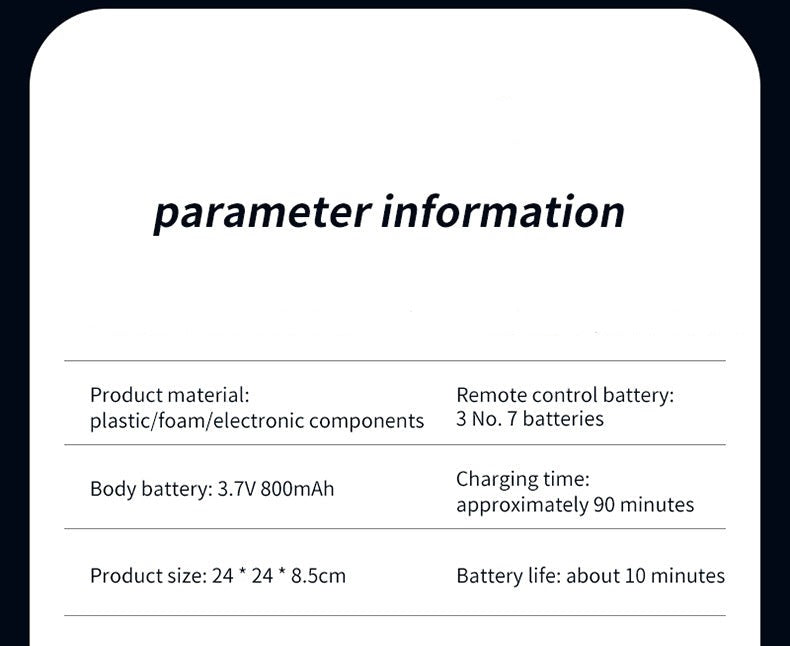 Experience the full potential of flying with the Ninja Dragon S8 UFO Obstacle Avoidance Smart Drone. Ideal for novices and youngsters, this drone boasts a stunning design, customizable lighting, and a lightweight build. Capture stunning landscapes using its equipped camera and achieve perfect shots with the Altitude Hold Mode. The S8 drone is easy to use with a quick start mode and convenient one-button takeoff and landing. Stay safe with its advanced obstacle avoidance technology, height-positioning, and low-battery protection. The drone's versatile flight modes include 360-degree flips, headless mode, slow/fast speeds, and circling flight. The package includes a drone, remote control, battery, USB charging cable, spare propellers, screwdriver, and user manual.