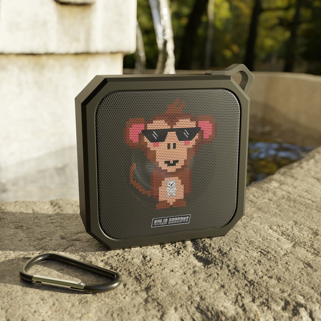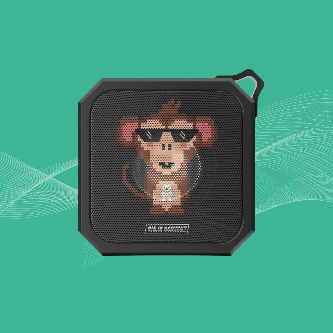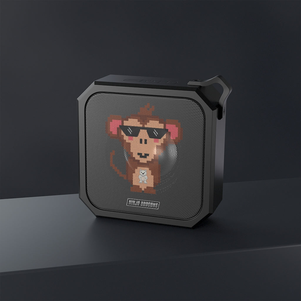 Discover an alluring way to enjoy your favorite music tracks with the Ninja Dragons Monkey Retro Pixel Bluetooth Speaker. A collection of cute and fun retro pixel art adds a touch of charm to this waterproof speaker. With compact size and a carabiner clip, you can take this IPX6 certified waterproof speaker wherever you go. It features a Bluetooth working range of 33 feet, built-in microphone, music controls, and two hours of music at maximum volume. The package includes a micro USB charging cable and has dimensions of 3" x 3" x 1". Get this speaker and get ready for a musical journey like never before!