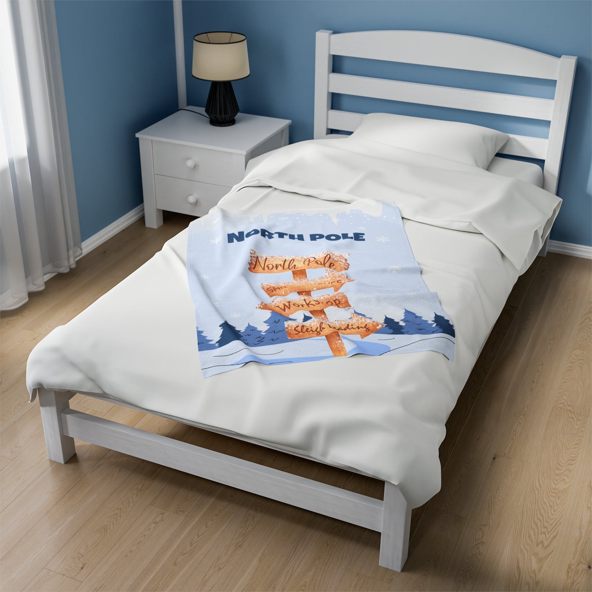 Snuggle up with our North Pole Navigation Plush Blanket Throw - Holiday Edition. This cozy throw features charming illustrations of the North Pole and directional signs that point the way to Santa's workshop and home. Add a touch of whimsical, festive magic to your holiday decor with this stylish and warm blanket. Available in three sizes - 30x40", 40x50", and 60x80" - the blanket is made of 100% polyester and features a single-side design. Get ready to embark on a festive journey with our North Pole Navigation Plush Blanket Throw - Holiday Edition.