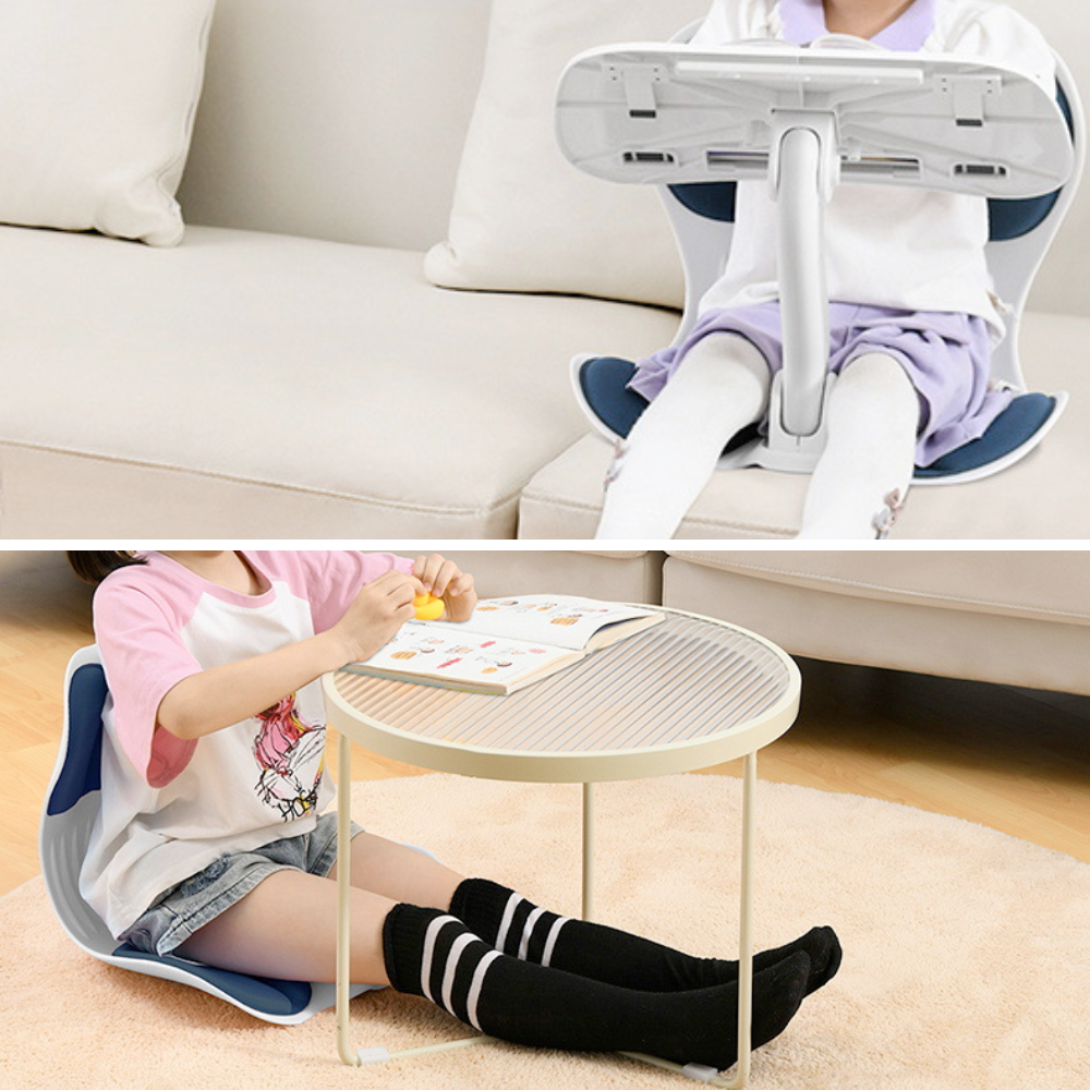 The Compact Seat and Table Duo Portable for children is a versatile companion that offers comfort and productivity on the go. With adjustable angles and height settings, it promotes an upright posture for enhanced support. This duo easily transforms into a reading rack, providing ergonomic assistance for reading, working, or relaxing. Lightweight and portable, it is ideal for travel, picnics, or any situation that requires convenience and functionality.