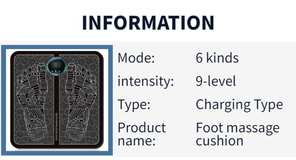 Experience ultimate foot relaxation with the cutting-edge Electronic Muscle Stimulation Foot Massage Pad. Boasting an impressive selection of 9 muscle relaxation modes, this device effectively relieves stress and tension in your foot muscles. Its compact design ensures convenient usage and easy portability. The low frequency treatment, characterized by gentle impulses, enhances blood circulation and promotes muscle relaxation. With the soothing effects akin to a hand pressure massage, this device offers a truly rejuvenating experience. Indulge in the ultimate foot pampering with this state-of-the-art product.