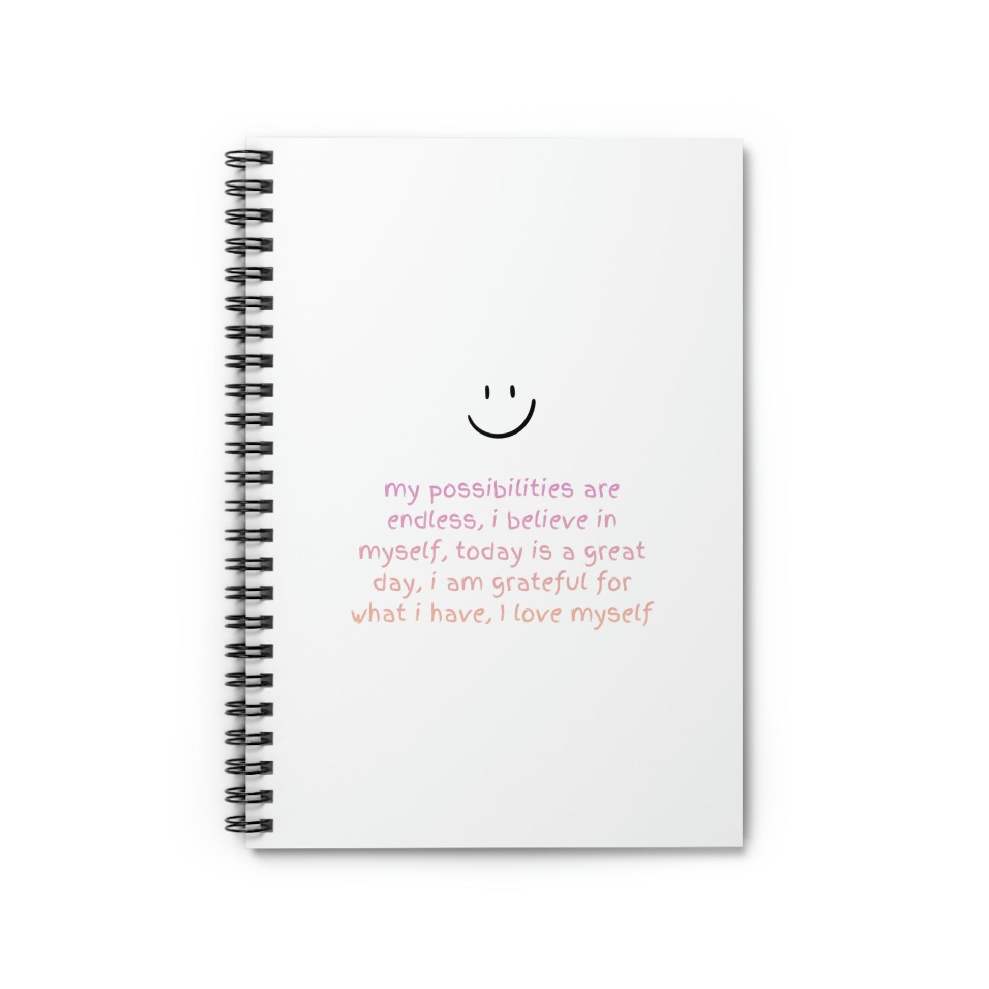 This trendy and stylish Positive Affirmations notebook is the perfect tool to jot down your everyday musings, notes or positive affirmations. The notebook comes with 118 ruled line pages, providing ample space for all your writing needs. Its lay-flat design makes it convenient to use for everyday writing. The notebook also features an attractive front cover print that will grab everyone's attention. The dark grey back cover adds to its elegance. Carry this notebook with you and let your thoughts flow freely.