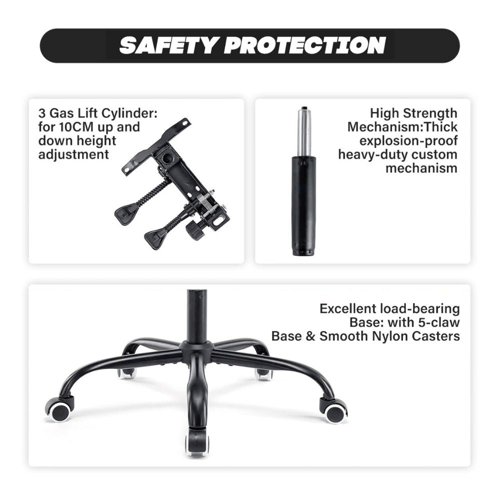 Upgrade your work from home setup with our Premium Vegan Leather Office Massage Chair. Equipped with 7 massage points and 5 massage modes, this chair will provide instant relaxation for your back and full body. The retractable footrest adds to the experience, while the lumbar support cushion and thicken backrest ensure comfort and ideal posture. The chair is made of scratch-resistant PU leather and comes with a storage pocket for small items. With a 90°~135° lying design and height adjustability, this chair is perfect for people of all sizes. The 5 claw universal wheel ensures stability and mobility. The package comes with everything you need for assembly, although the chair requires only minimal assembly. Please note that we cannot accept returns on assembled products.