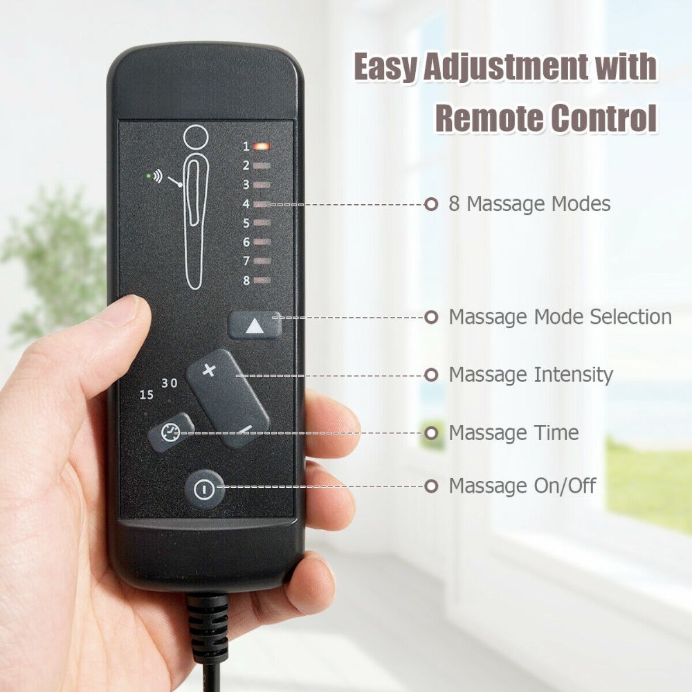 Experience ultimate relaxation with our exquisite Vegan Leather Sofa Massage Chair. Crafted from premium materials, this chair is perfect for unwinding, whether you're watching TV, sleeping, or simply taking a break. Equipped with an advanced 8-mode massaging system, it instantly soothes your back. Adjust the massage modes, intensity, and timer effortlessly with the included remote control. This sleek and stylish chair features a side pocket for convenient storage and a reclining function that can be adjusted from 90° to 160°. Enjoy the highest level of comfort with our high-quality, soft, and resilient cushion. The wear-resistant and waterproof PU leather surface ensures durability. With fast shipping and delivery within 7 days, treat yourself to the ultimate relaxation experience today.