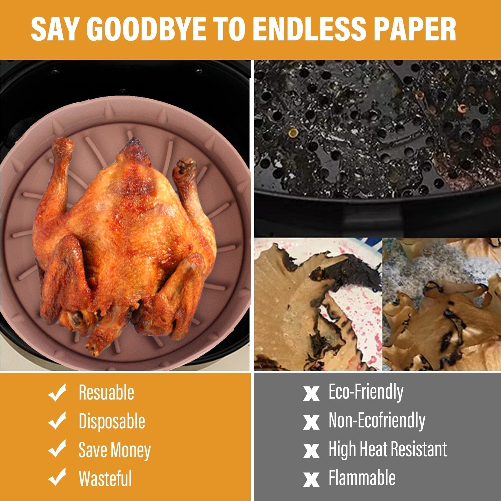 Introducing our Silicone Basket for Air Fryers, designed in a round shape to enhance cooking performance. Crafted from high-quality, BPA-free silicone, this durable basket ensures longevity and safety. With its mess-free design, food residue is kept away from the fryer. Cleaning is effortless as the basket is dishwasher safe. The basket features silicone-lined handles for easy lifting and maximum air circulation, resulting in perfectly cooked food. Compatible with air fryers, ovens, microwaves, freezers, and dishwashers. The basket measures 7.87" x 7.87" x 1.77" and comes in a stylish gray color. Elevate your cooking experience with this essential kitchen accessory. Package includes 1PC * Basket.