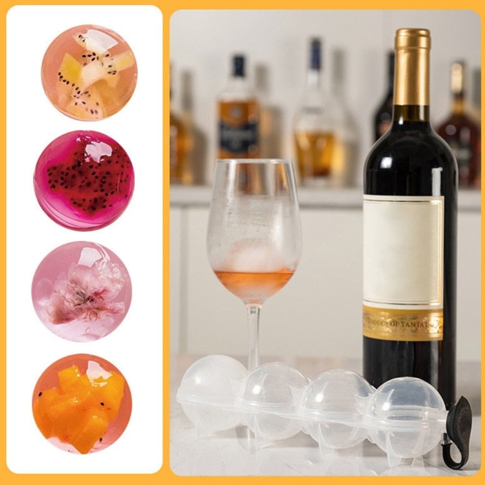 This versatile 4 Hole Ice Cube Maker is ideal for creating circular ice hockey molds, whisky cocktails, vodka spheres, and more. Crafted from safe and non-toxic food-grade silicone, it adds a creative touch to your bar parties, kitchen ice boxes, and homemade ice cream. The four spacious holes accommodate standard ice cubes, while the removable lid ensures easy filling, stacking, and storage. With its lightweight, durable design, and dishwasher-safe feature, it is an excellent addition to any kitchen. Each mold produces four 5.5cm / 2.2-inch ice spheres that turn sparkling and crystal-clear when frozen. Made of plastic. Package includes one Ice Ball Maker Mold.