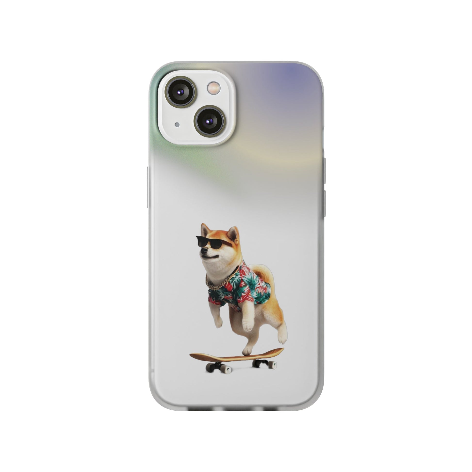Semi-Transparent Shiba Inu iPhone Case with a Hawaiian Flair