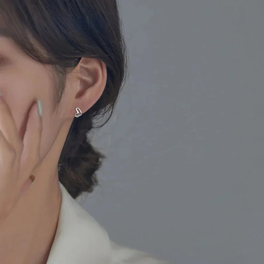 Heart-Shaped Silver Hoop Earrings