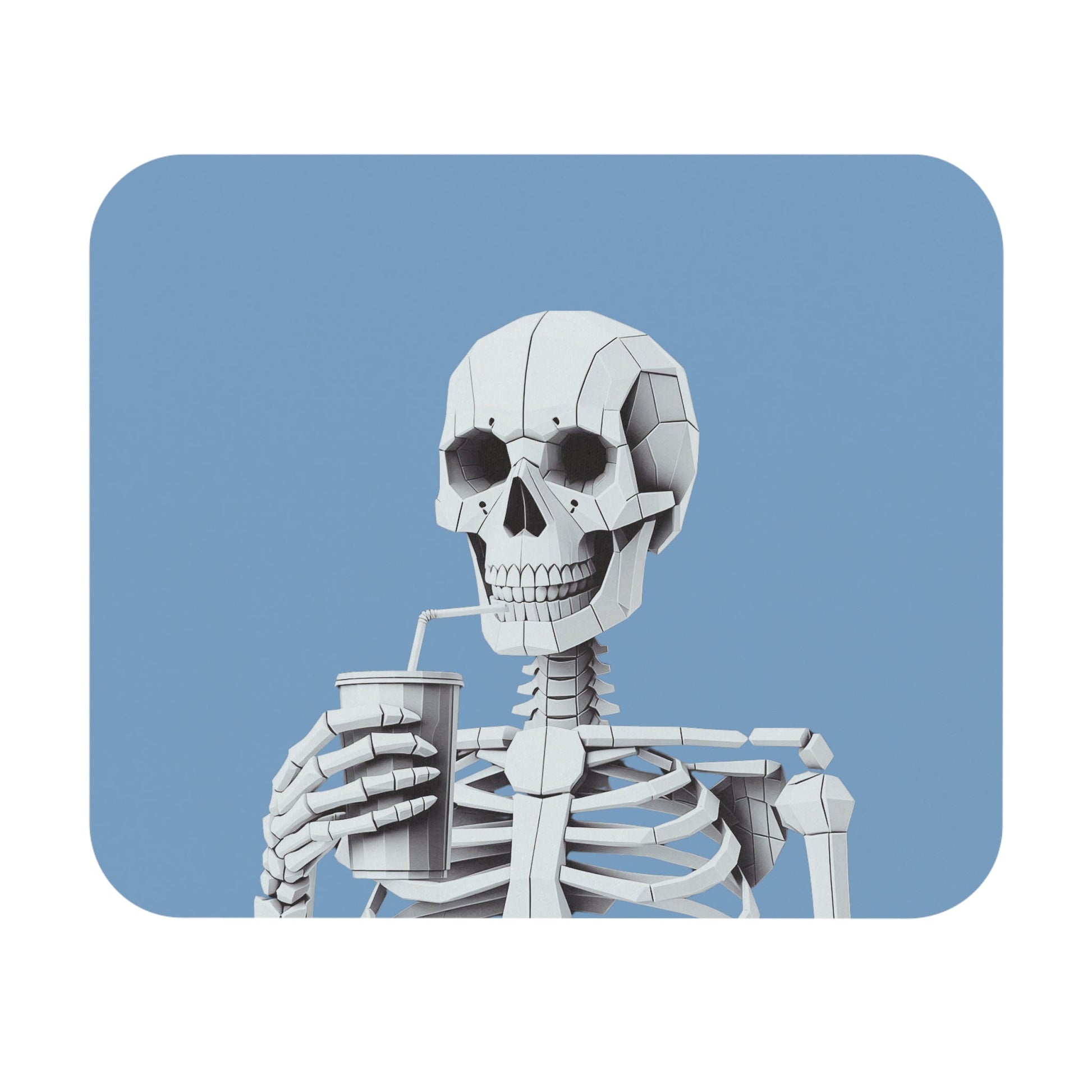 Upgrade your workspace with this unique mouse pad that features a skeleton leisurely enjoying his drink. Ideal for your home office or studio, this mouse pad guarantees a firm grip and effortless mouse movement, thanks to its durable, high-density foam and ultra-thin rubber base. The rectangular shape of the mouse pad makes it suitable for different desk sizes. Measuring 1/16" thick, this mouse pad is perfect for your professional and personal needs. Upgrade your desk set-up with this functional and stylish mouse pad.