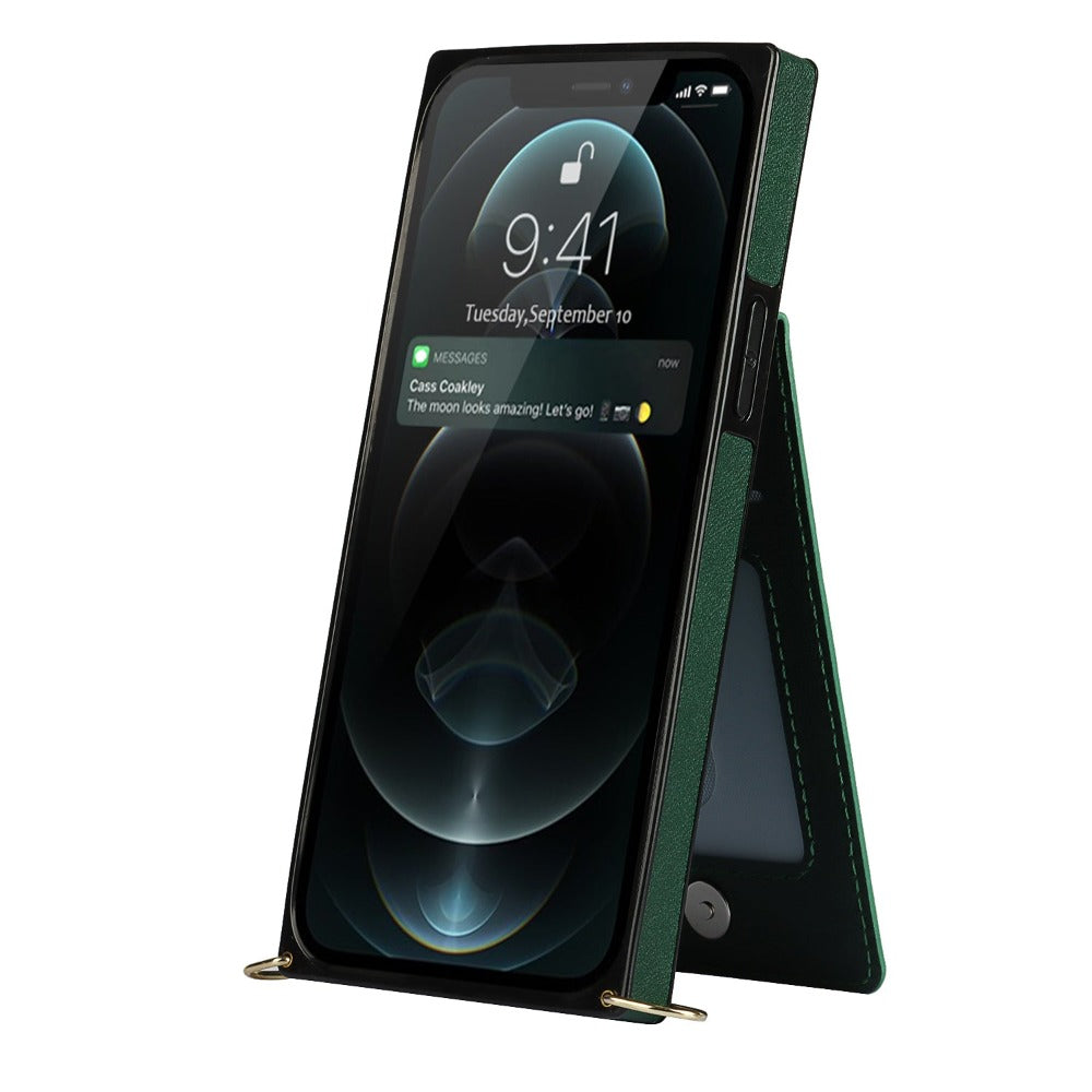 This wallet back case for iPhone is designed to be both slim and functional. It features a zipper coin bag for your cash and coins, as well as five card slots (including one for your photo ID) that make it easy to present your identification when needed. Additionally, the case comes with a detachable crossbody strap and an anti-lost lanyard that allow you to wear your phone vertically or horizontally for easy accessibility. The flip stand on the back of the case also functions as a kickstand so you can watch videos or make video calls without having to hold your phone in your hand. Available in Rose Gold, Green, Red, and Black, this case is compatible with iPhone models 7 through 13 Pro Max.