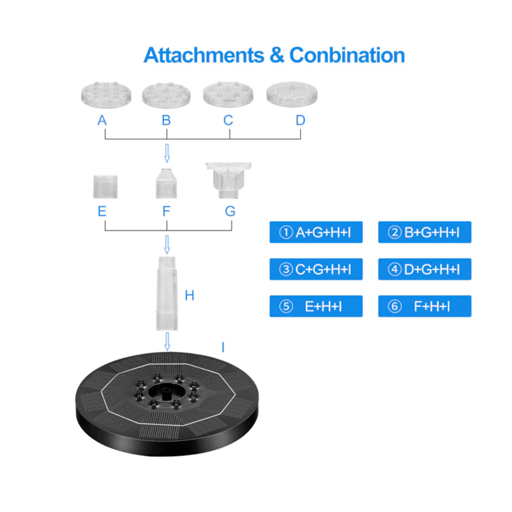 Introducing a stunning water feature that is sure to enhance the beauty of your garden and outdoor space. This fountain operates on solar energy, eliminating the need for batteries or electricity. During the day, the solar panel collects energy from the sun and stores it in the rechargeable battery, ensuring uninterrupted operation even in low-light conditions. The LED light adds an enchanting touch, illuminating the water flow and creating a breathtaking visual effect during the evening hours. The fountain is easy to set up, hassle-free, and comes with 8 nozzles to meet your different needs for water spray height and shape. It is a perfect addition to gardens, patios, or even as a centerpiece for outdoor events.