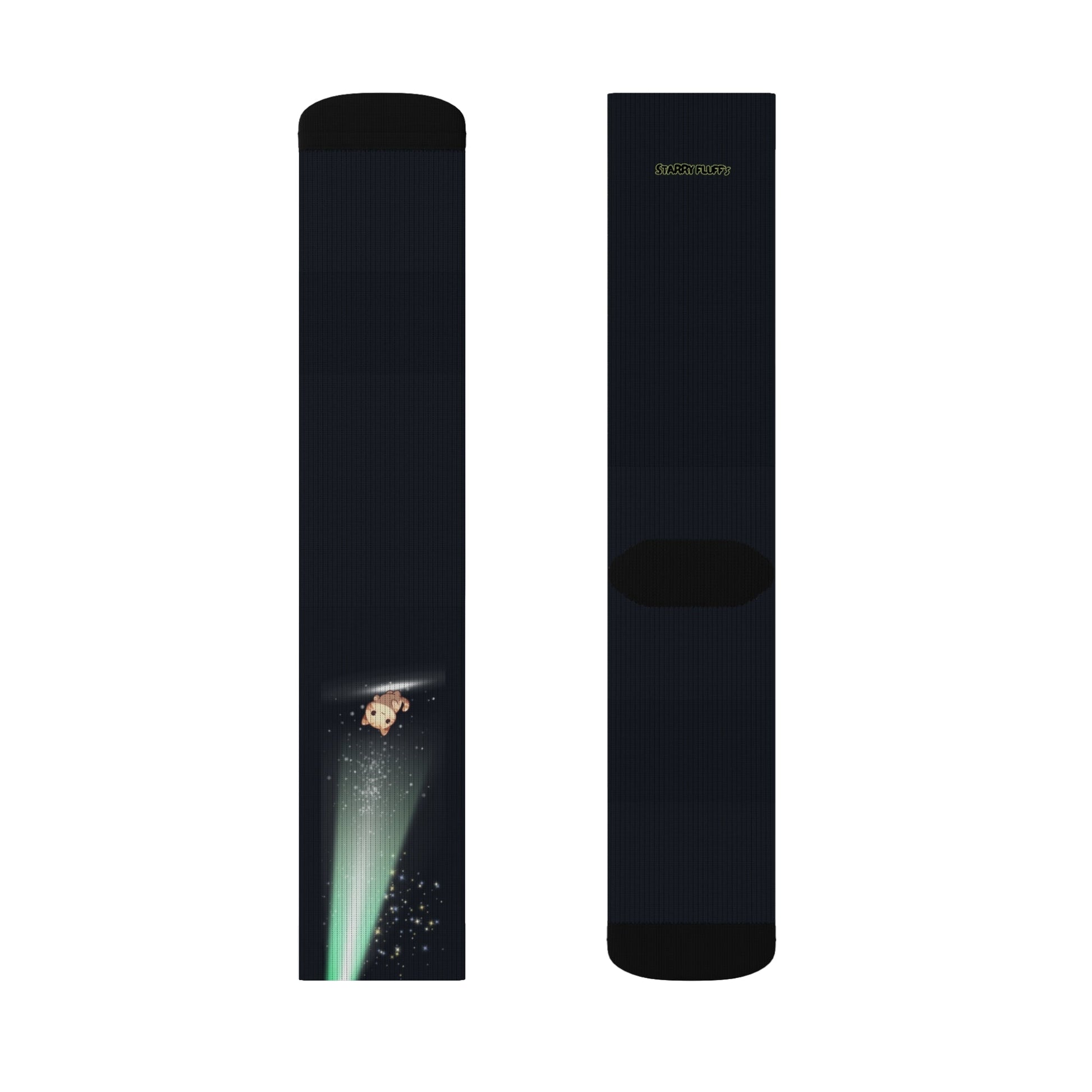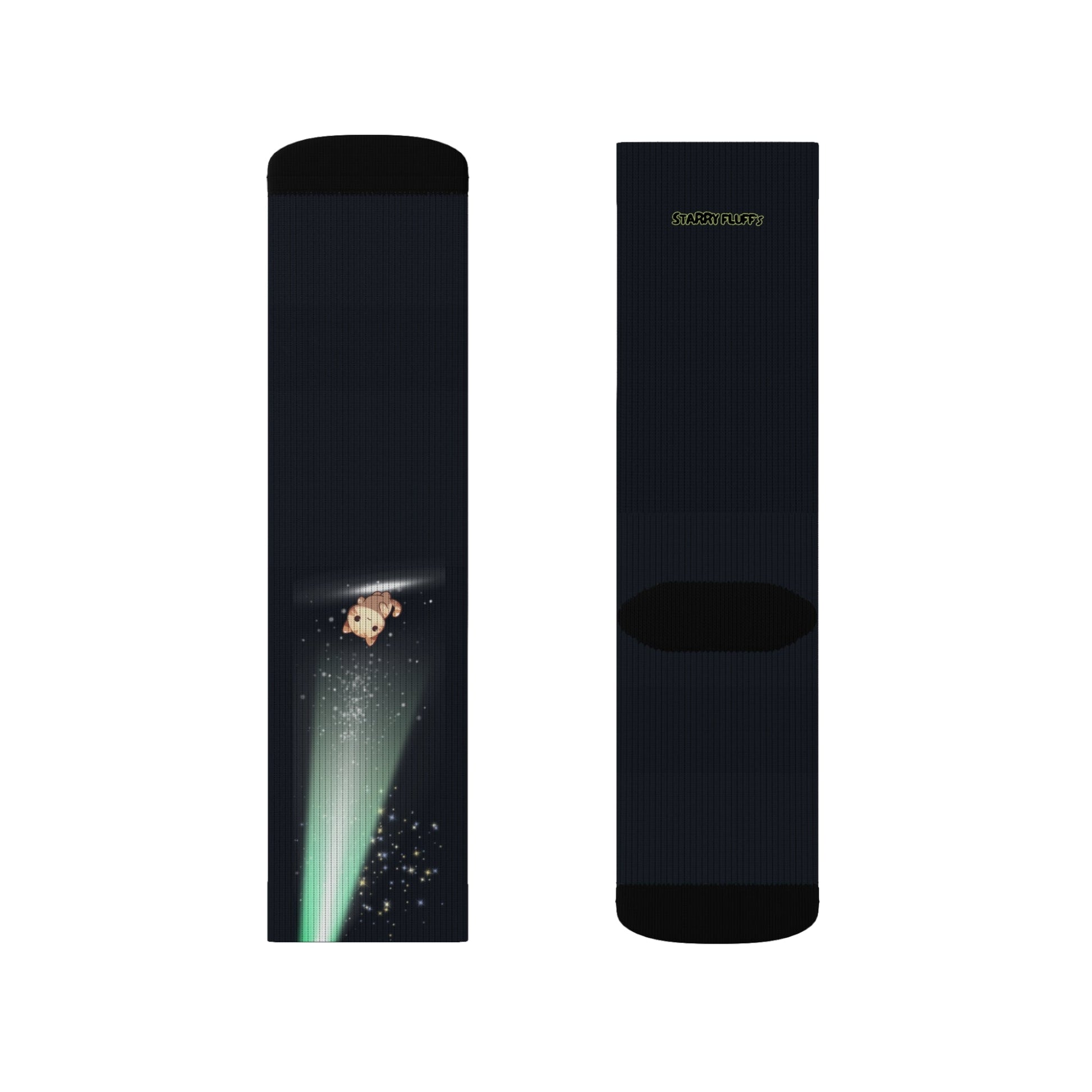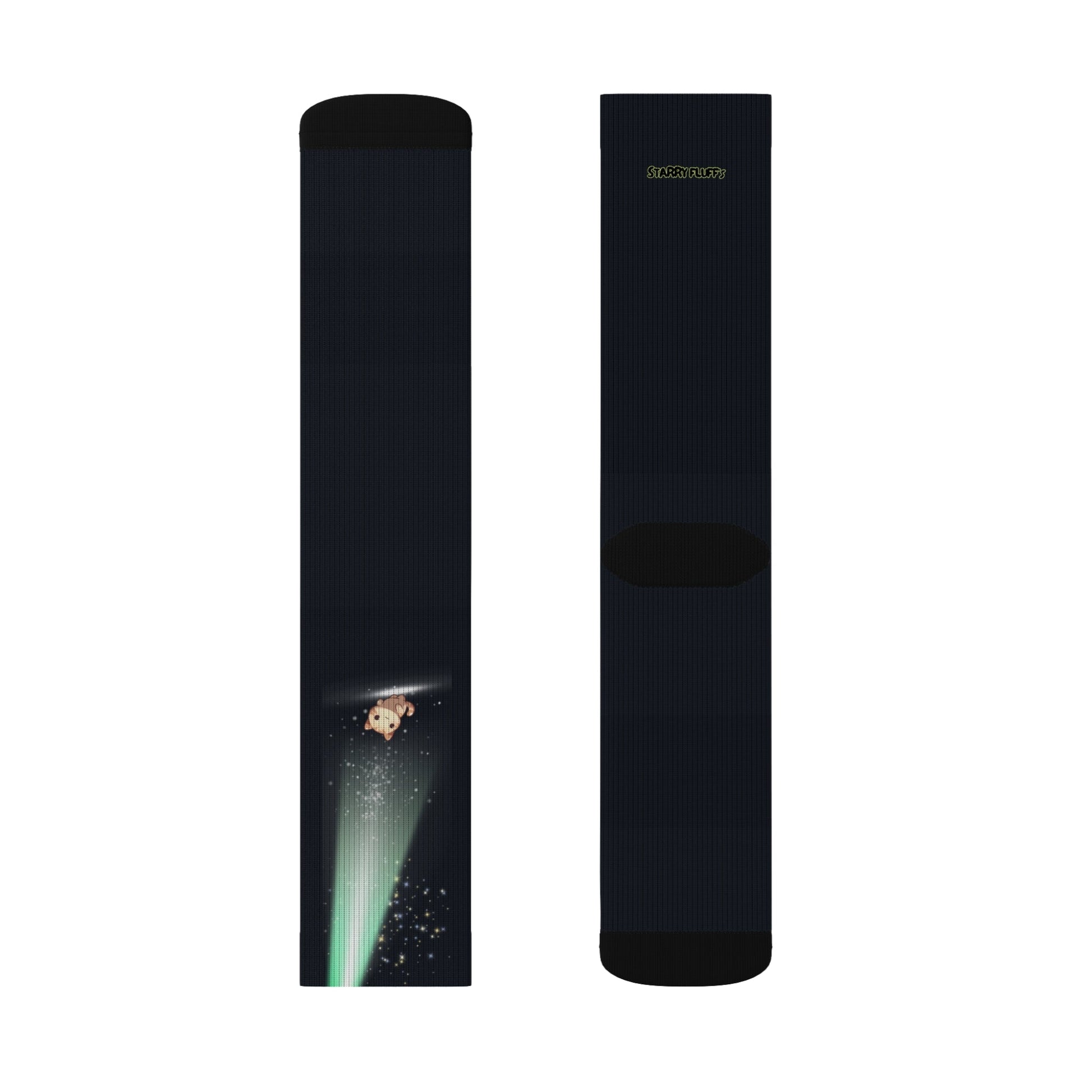 Introducing the Starry Fluff's - Cosmo Cat socks, a perfect blend of style and performance for both extraterrestrial beings and Earthlings alike. These socks add a subtle accent to a professional look or an eye-catching statement to a more extravagant outfit. Crafted from a mixture of polyester, acrylic, nylon, and spandex, these socks feature a ribbed tube and cushioned bottoms for ultimate comfort. Available in sizes S, M, and L, with a precise size guide for both women's and men's US sizing. Step into the future of fitness with our Starry Fluff's - Cosmo Cat socks.
