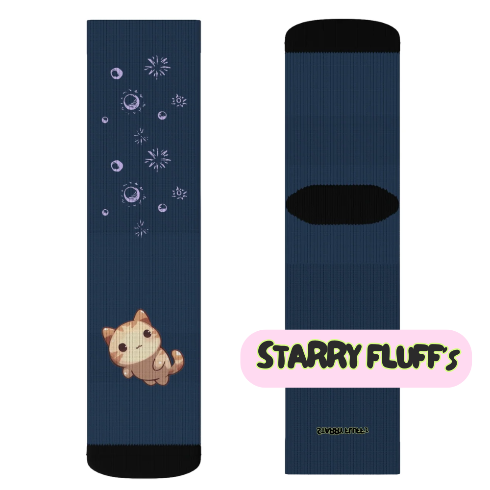 Cosmic Kitten in the Stars Playful Novelty Socks by Starry Fluff
