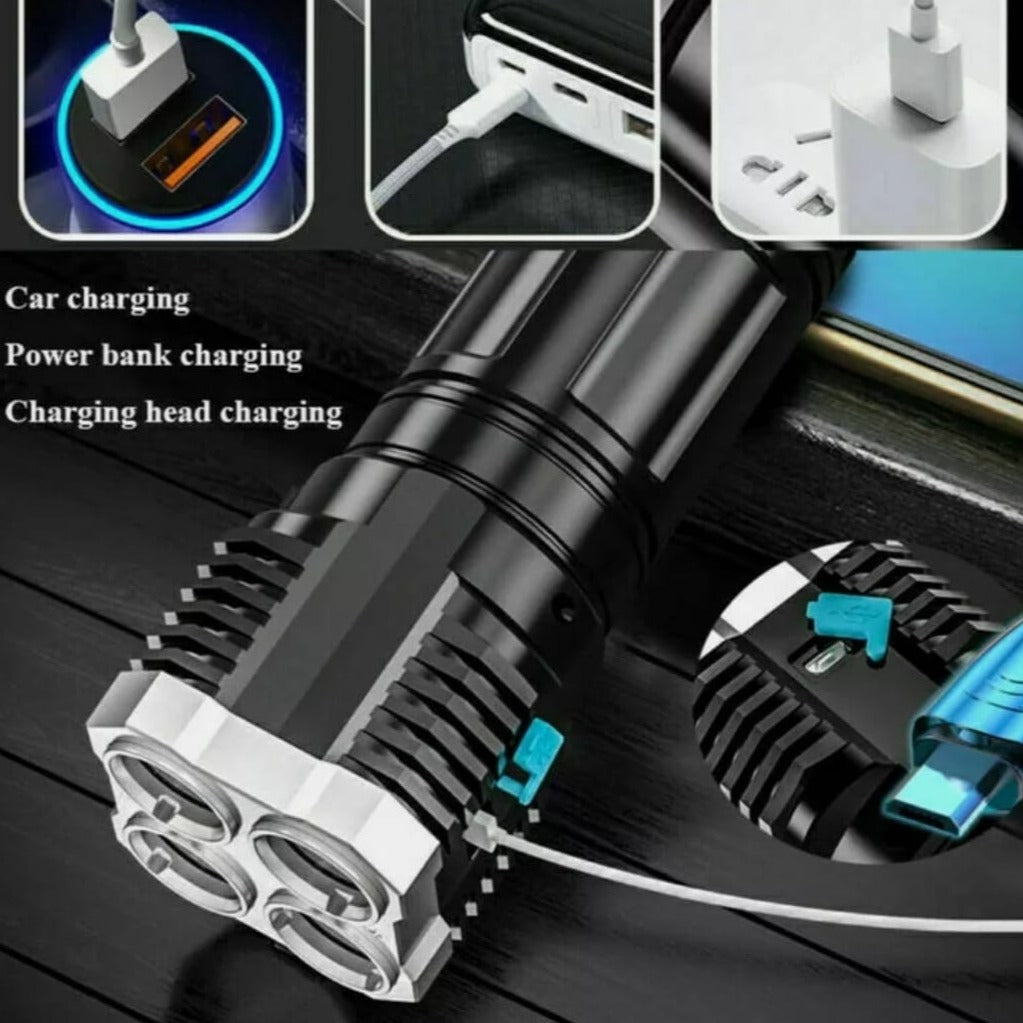 Powerful and Versatile 4-Head LED Waterproof Outdoor Camping Flashlight.
